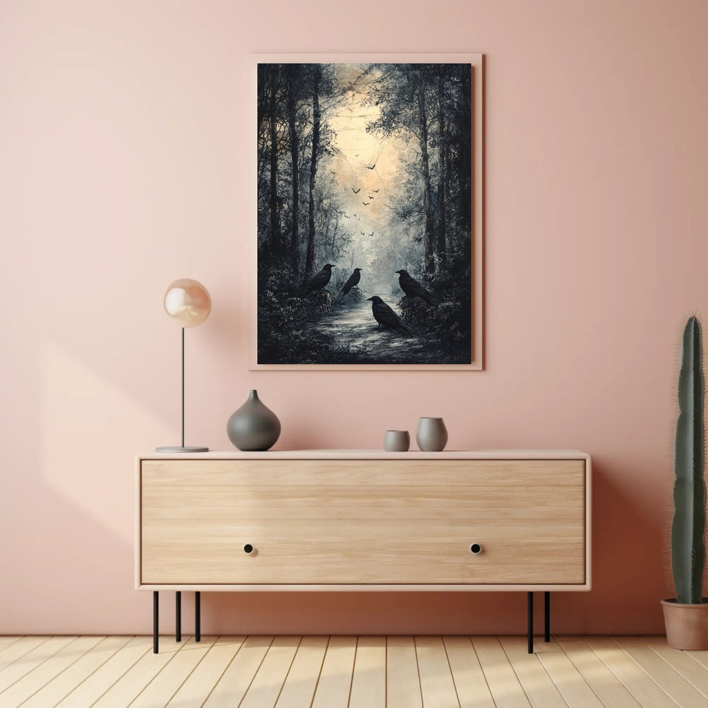 This scenic wall art poster makes a memorable gift or a dramatic addition to your own gallery wall — perfect for anyone who loves evocative, nature-inspired artwork. Elevate your space with PosterGoat’s Enchanted Forest With Ravens Poster today and let your walls tell a story.
