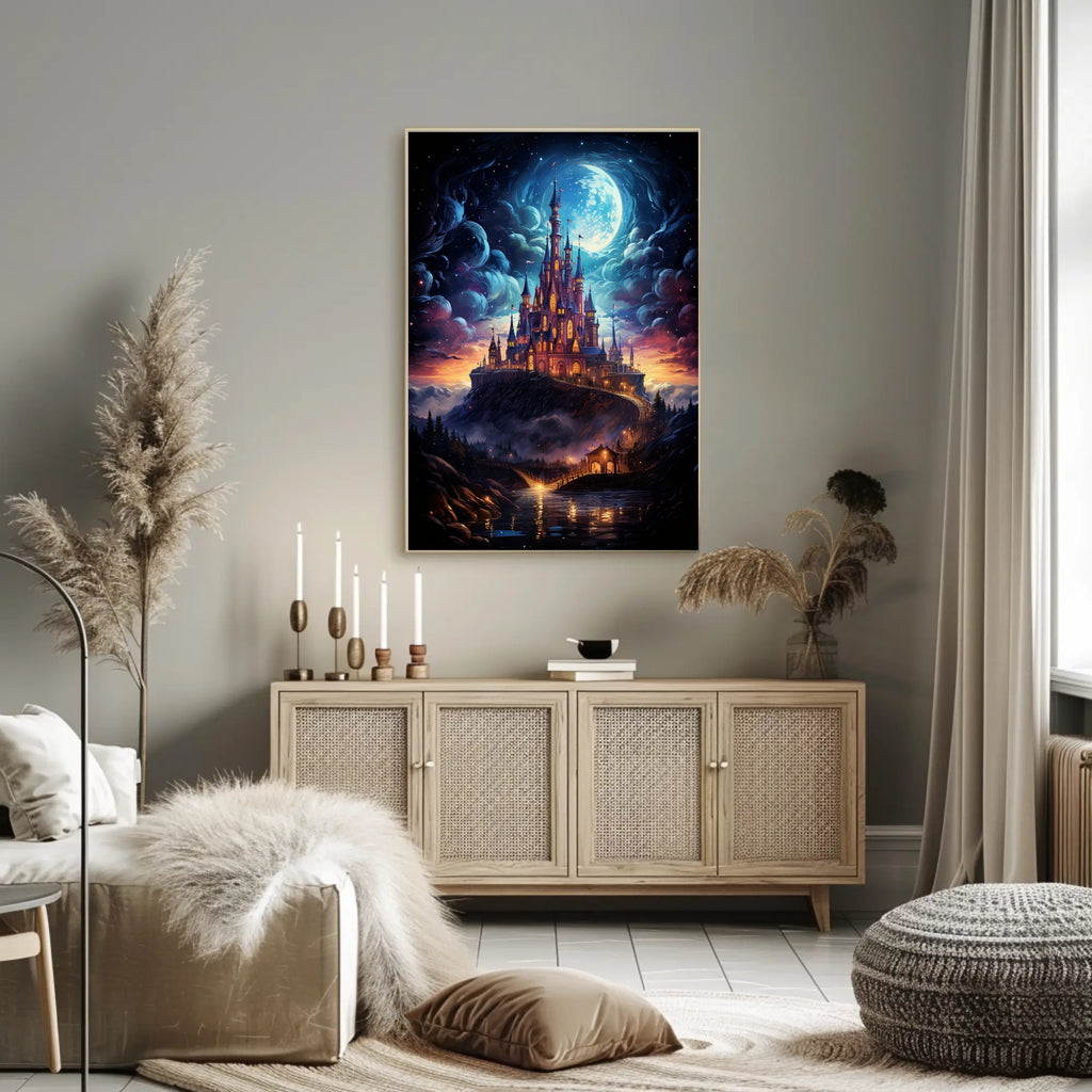 Elevate your decor with the Enchanted Moonlit Castle Poster and let your walls tell a story of wonder and beauty. Don't miss out on this charming piece—order yours today and experience the magic!