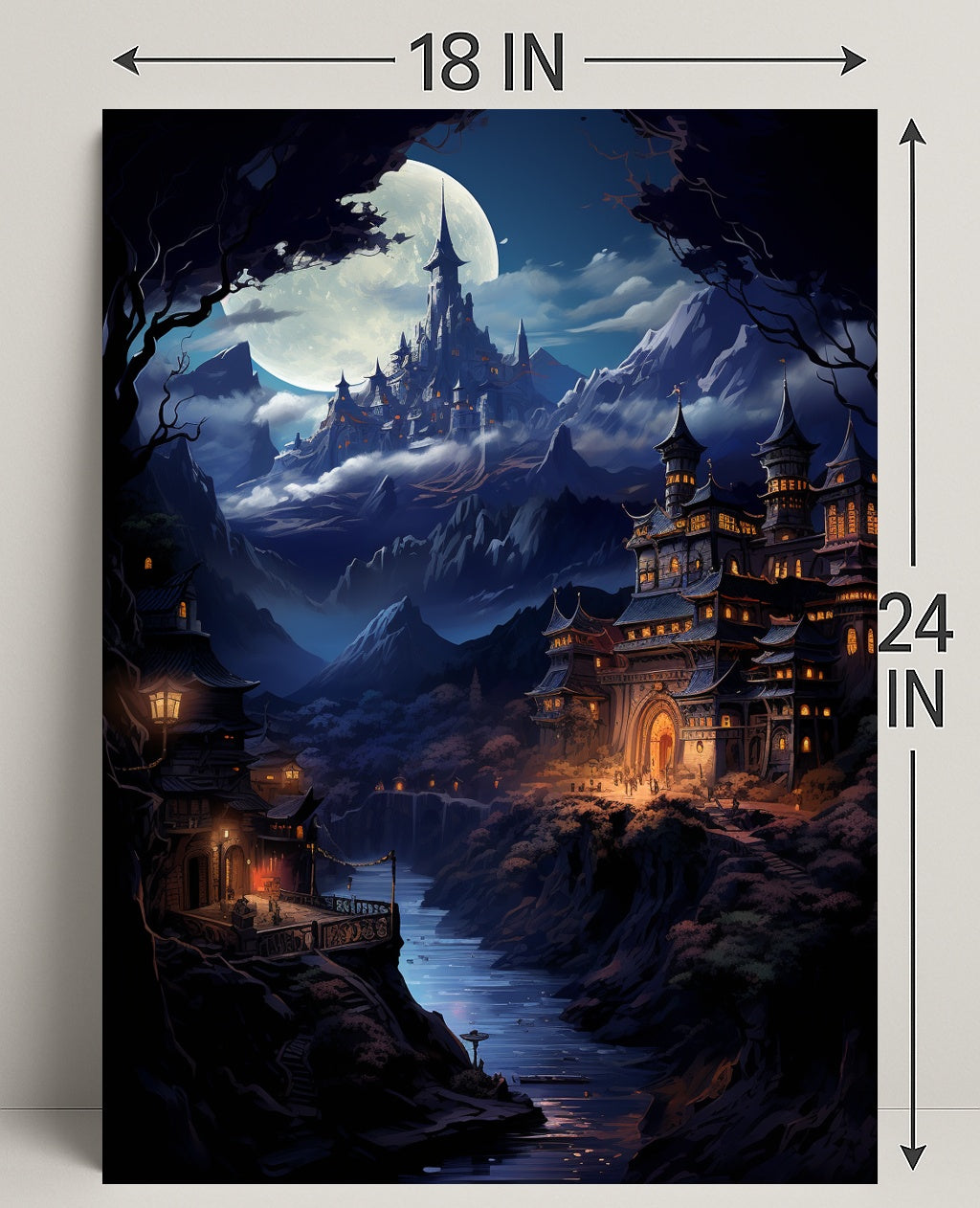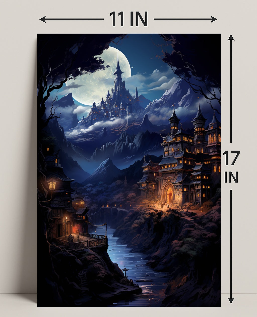 Mesmerizing Design: Featuring a beautifully illustrated moonlit castle, this poster enhances any wall with its enchanting visuals.