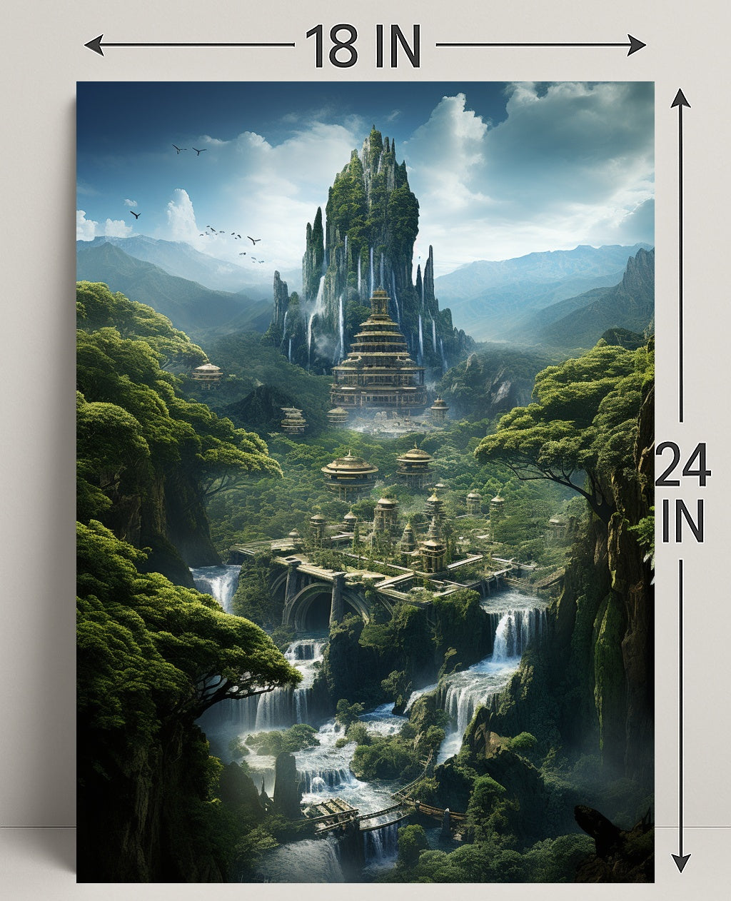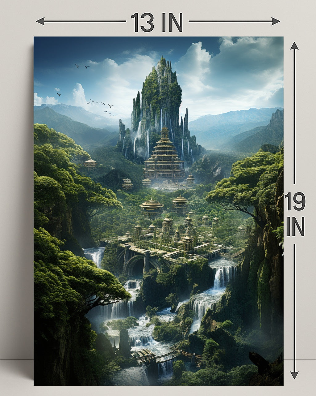 Discover the captivating allure of the Enchanted Mountain City Poster, a stunning piece of wall art designed to elevate your home decor. Inspired by breathtaking real-world scenery, this art print will transport you to a world where nature and architecture harmoniously coexist. Perfect for decor lovers and wanderlust spirits alike, this poster adds a touch of charm and adventure to any space.