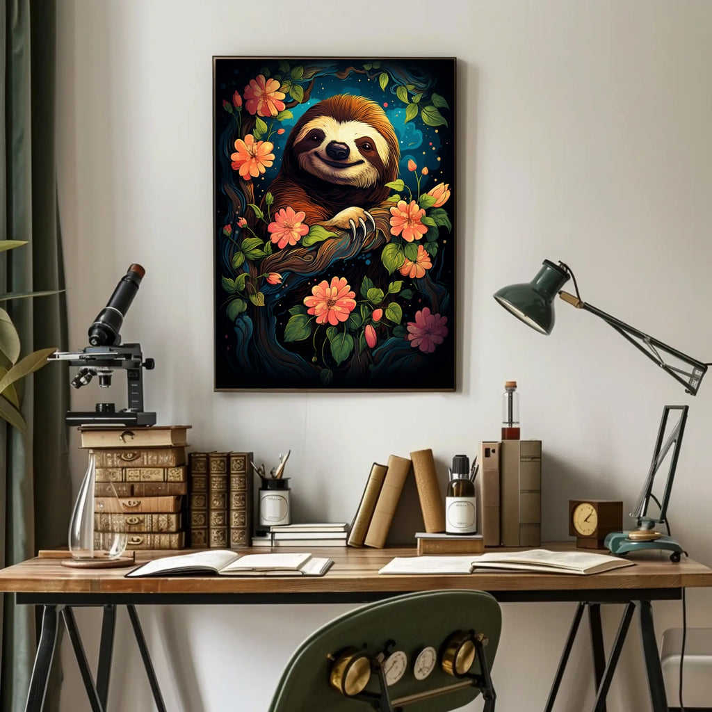 Elevate your decor with an effortlessly chic piece that invites imagination and relaxation every day. The Enchanted Sloth In Bloom Poster is a memorable addition to any gallery wall. Add it to your cart now and transform your space with a single, delightful print.