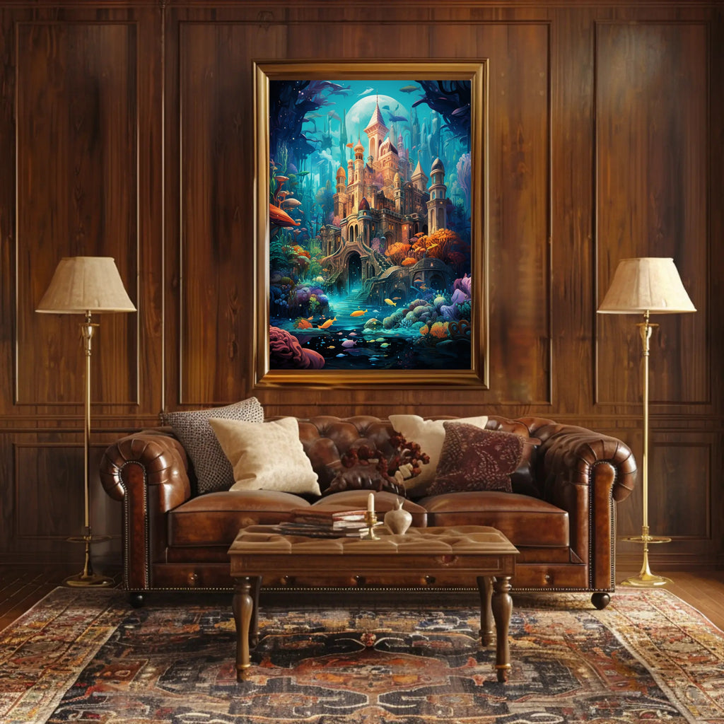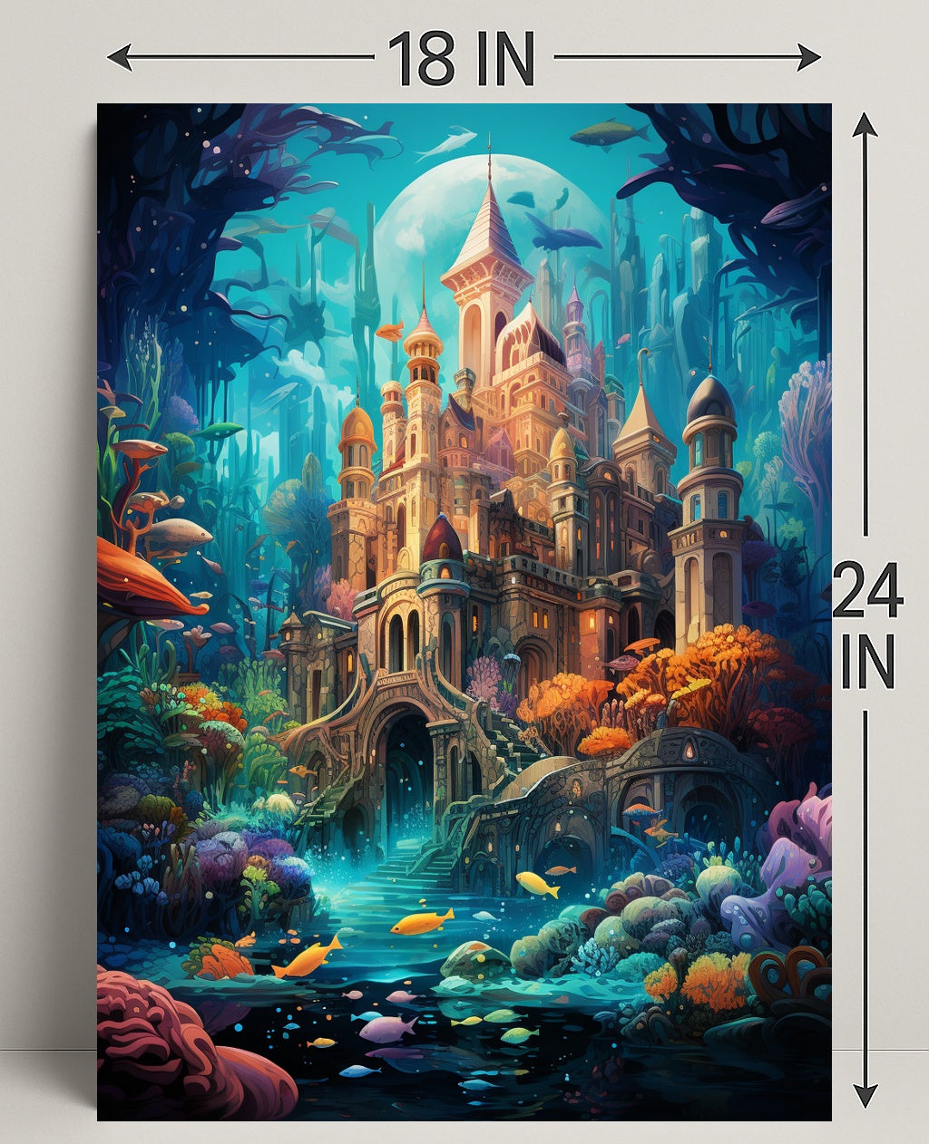 This PosterGoat piece makes a striking souvenir or gift for fans of castles, enchanted scenes, and underwater fantasy. Ready to frame and display — add depth, color, and story to your space today. Order now and let your walls tell a magical tale.