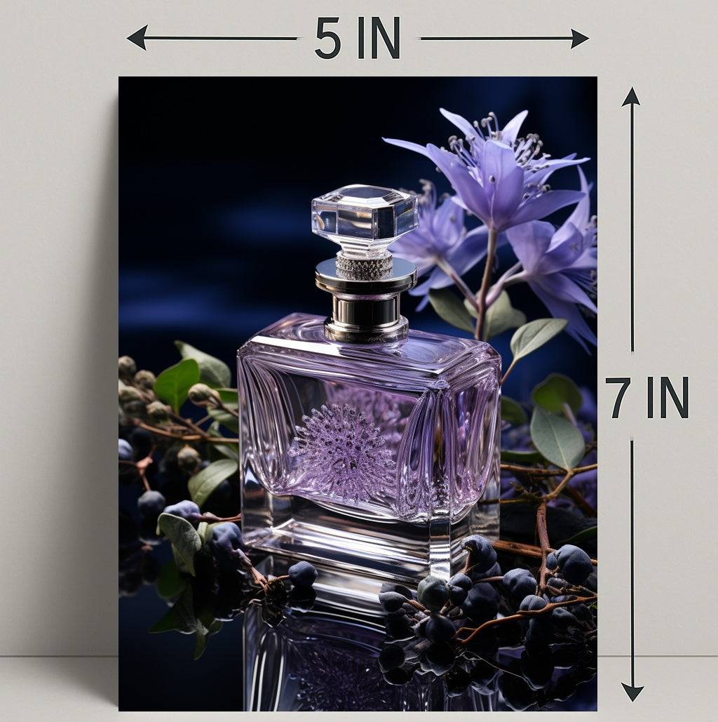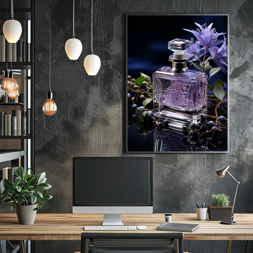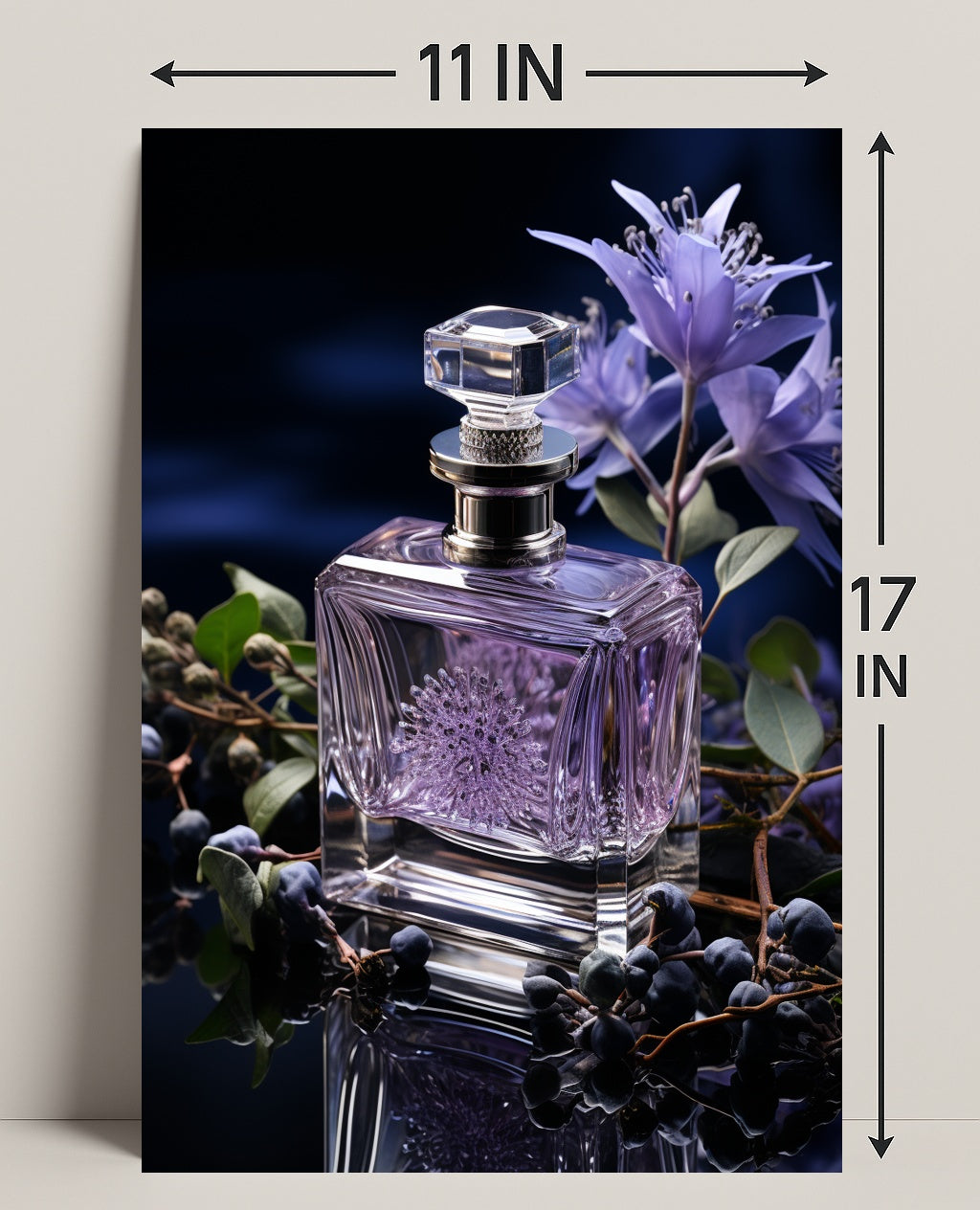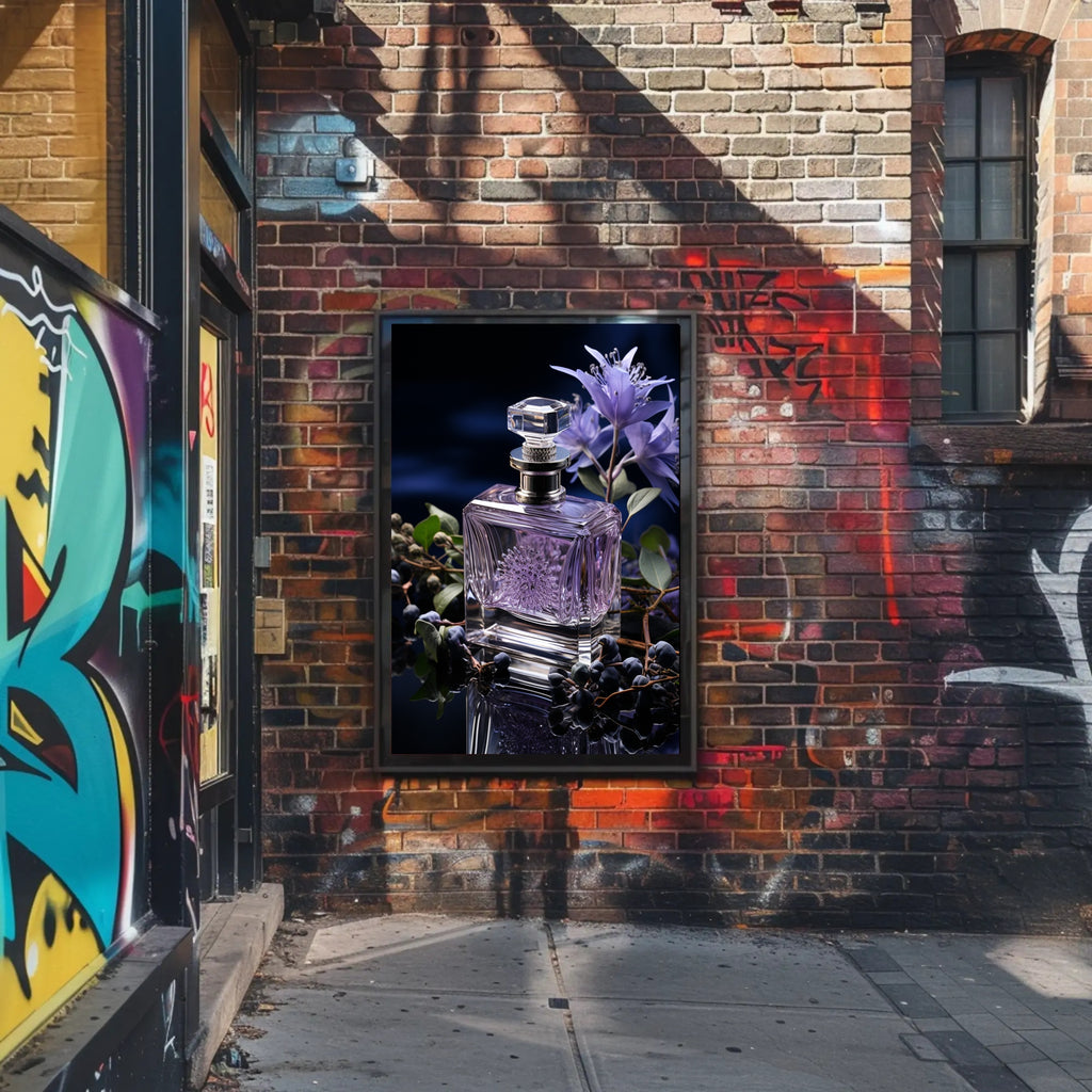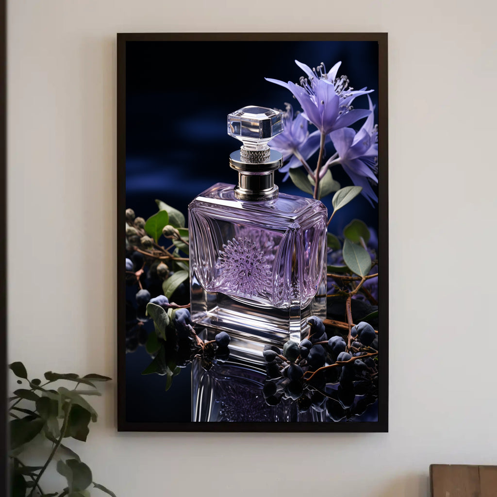The Enchanting Elegance poster transforms ordinary walls into curated displays of scent-inspired beauty. Its rich purples and deep shadows create depth and mood, while the reflective foreground and floral accents invite closer inspection — an effortless way to add charm and sophistication to your décor.