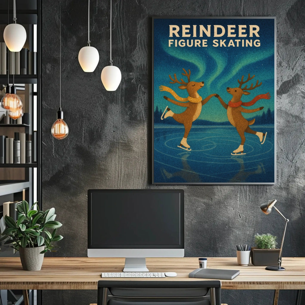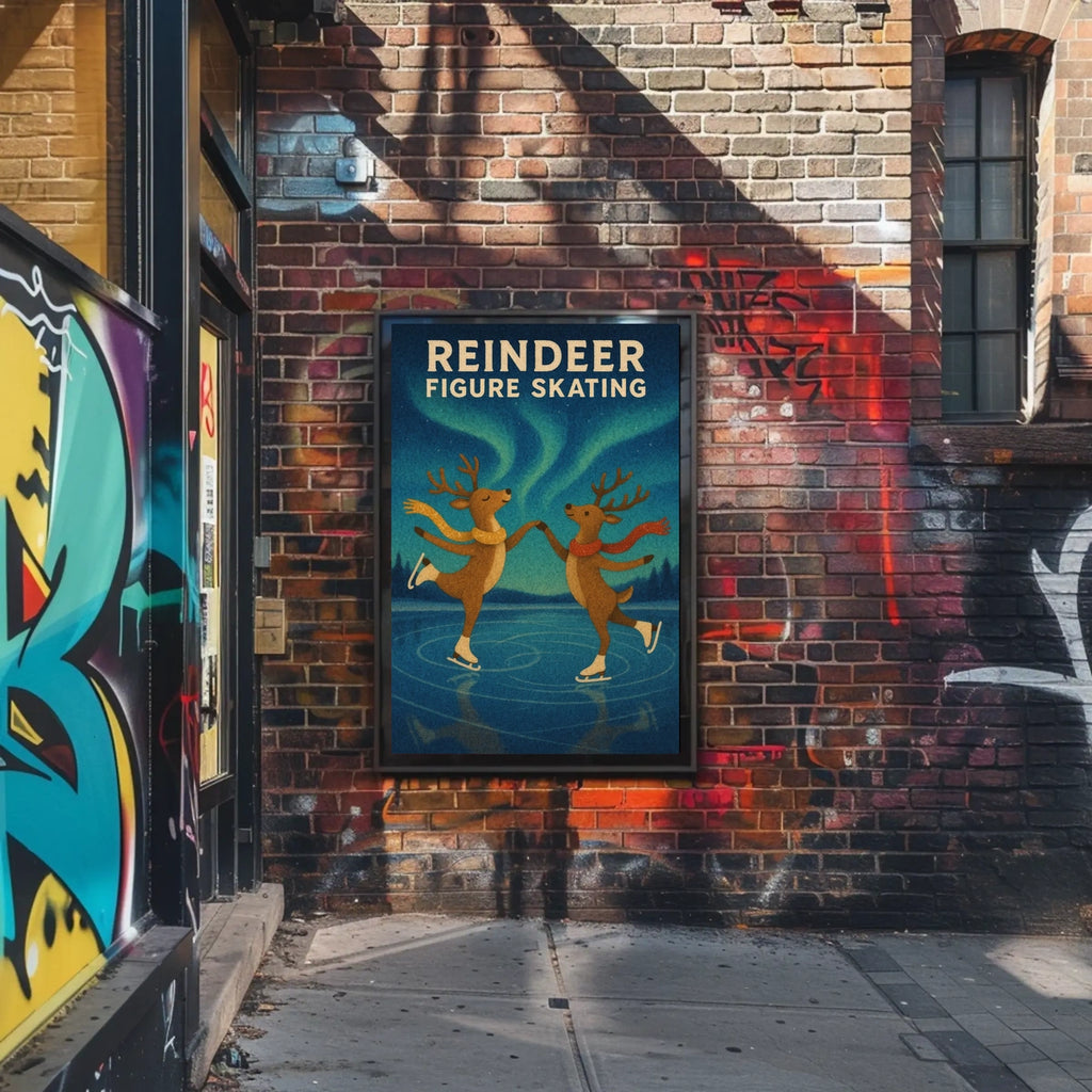 Bring the Enchanting Reindeer Ice Dance Fantasy Poster into your home, classroom, or office today and let your walls tell a powerful story. Embrace the festive spirit, magical atmosphere, and nostalgic charm of this reindeer skating scene, a delightful addition to any winter wonderland or vintage holiday decor collection.