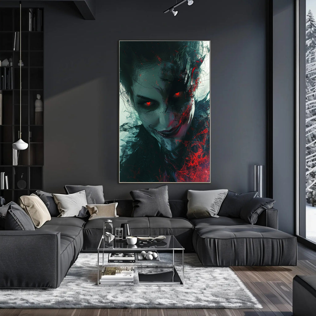 Powerful visual impact: High-contrast composition and intense red highlights draw the eye and create an unforgettable focal point for living rooms, studios, game rooms, and office walls.