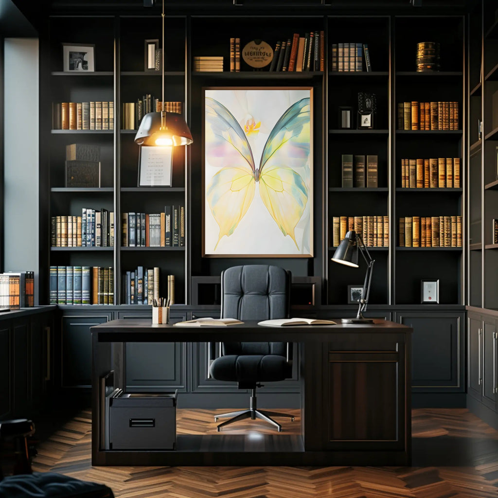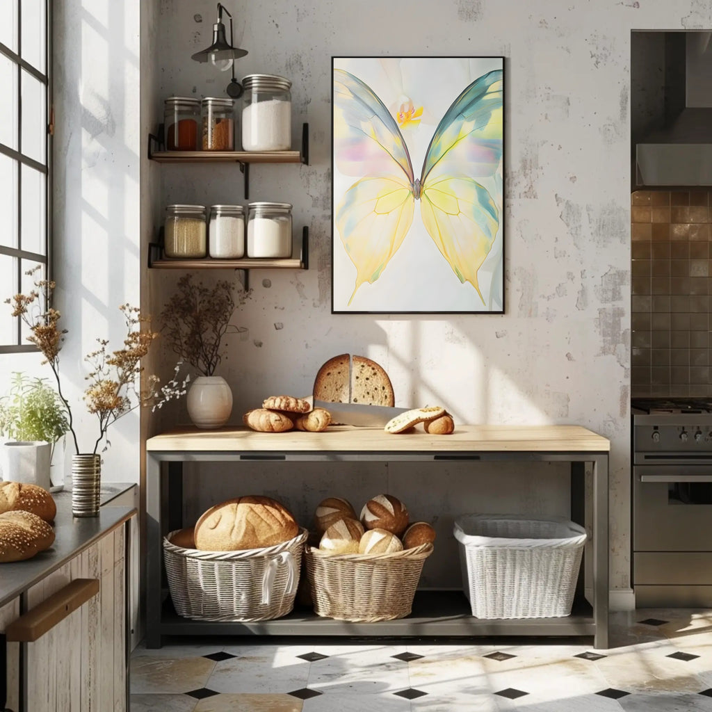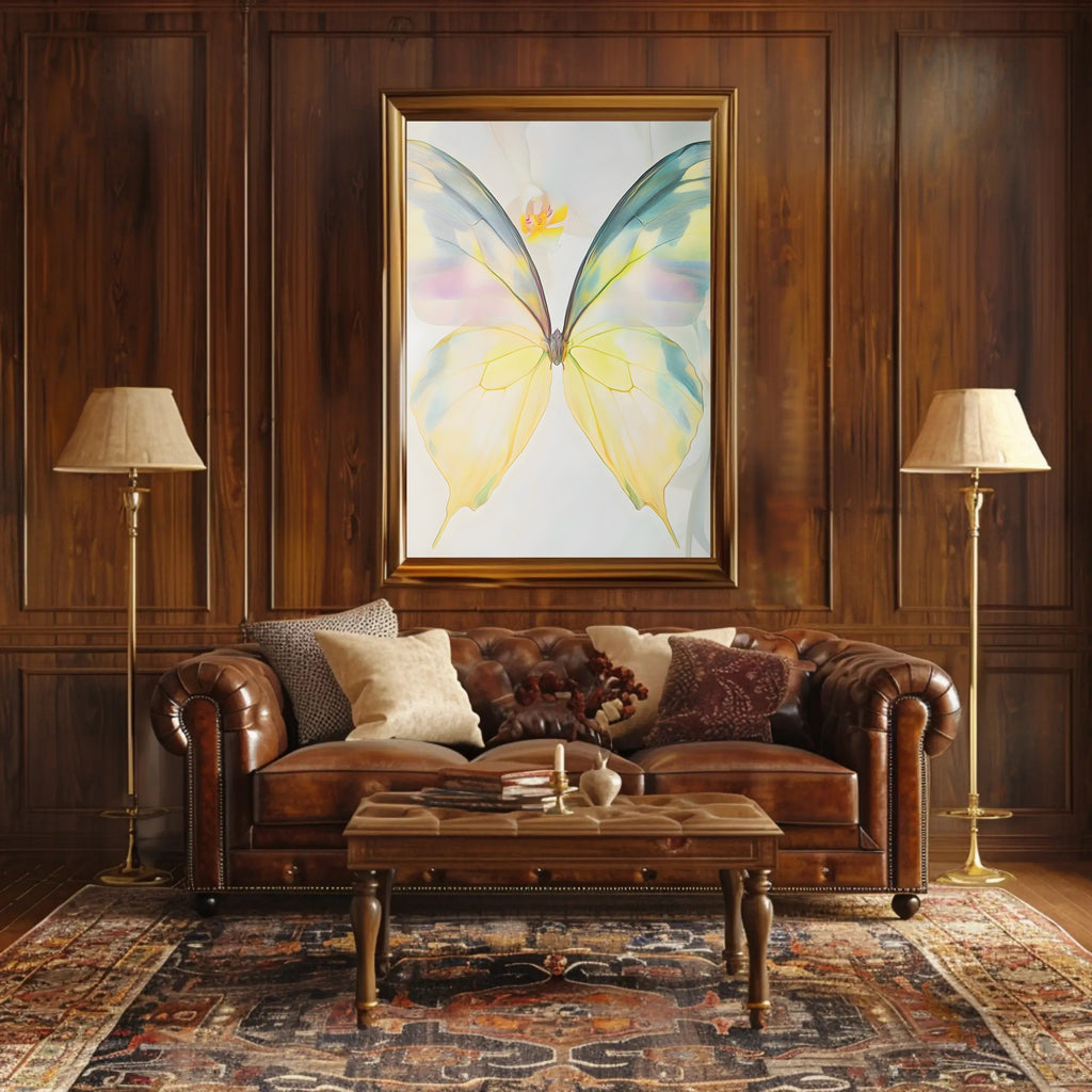 Ethereal Butterfly Wall Art Print from PosterGoat brings a whisper of nature into your home with soft, translucent wings rendered in delicate pastels. This minimalist poster captures fine, feathered veining and airy negative space to create a serene focal point that complements modern and Scandinavian interiors.