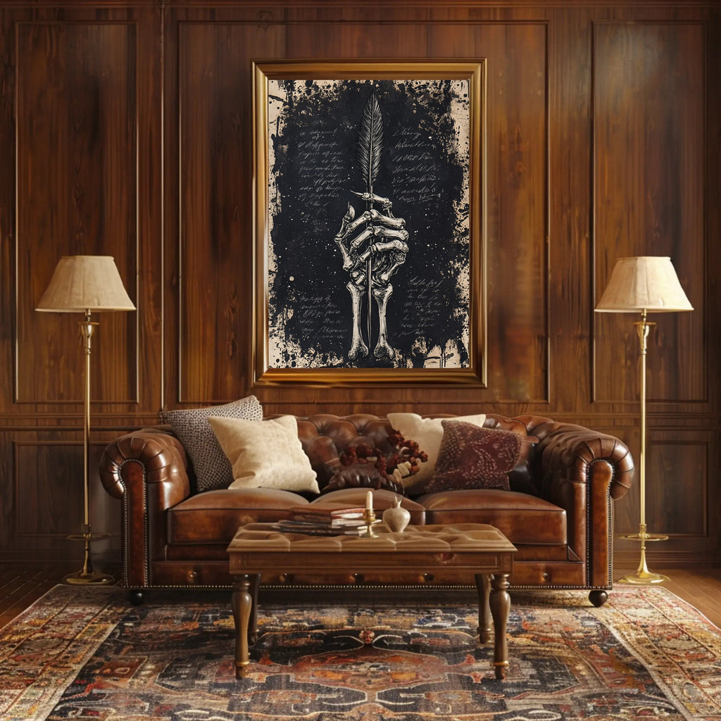Premium Print Quality: Museum-style reproduction that captures fine linework in the skeleton and quill, preserving every engraved detail and subtle shading.