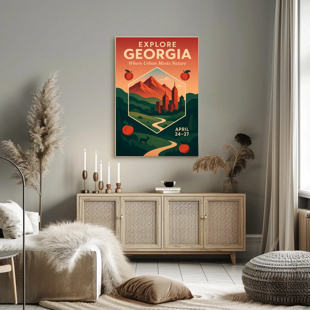 Whether you’re decorating a living room, bedroom, or workspace, this poster captures the essence of Explore Georgia and brings a sense of adventure and place to your space. It’s perfect for collectors, travel enthusiasts, or anyone who appreciates a piece that sparks conversation and curiosity.