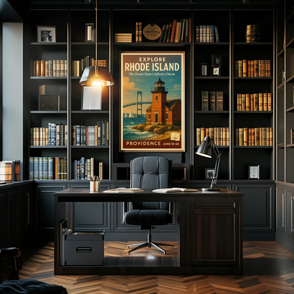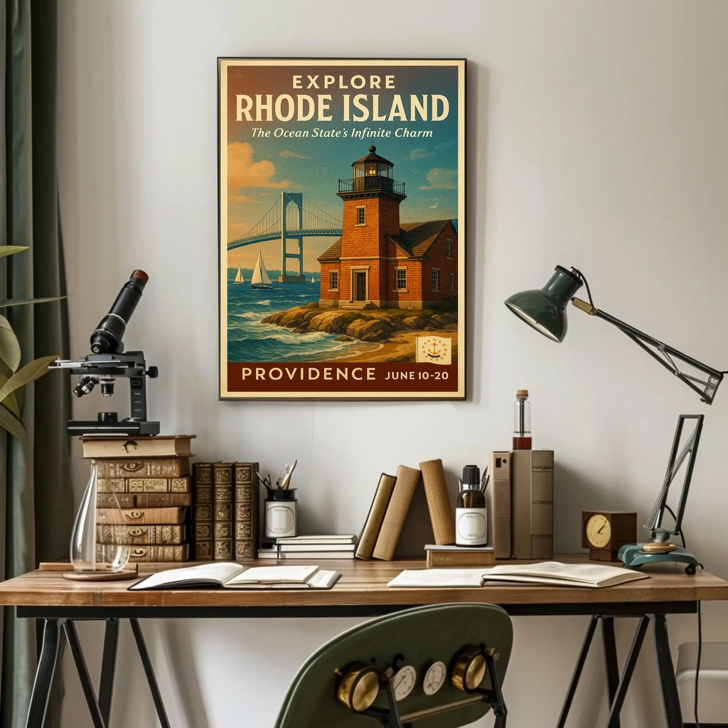 Capture the charm of Rhode Island with this Explore Rhode Island The Ocean State Poster. Designed for decor lovers and wanderlust spirits, this art print brings coastal scenery into any room, turning plain walls into a vivid, inviting focal point.