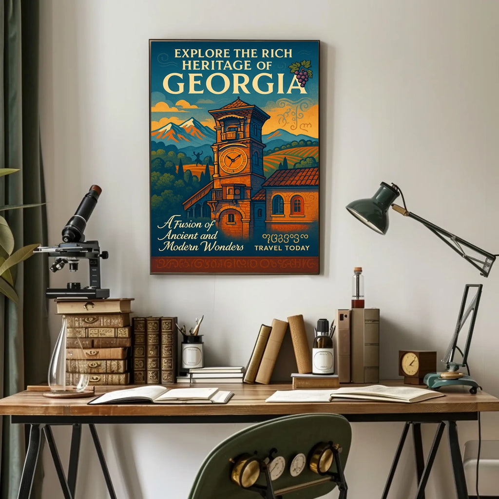 This poster captures the essence of Explore the Rich Heritage of Georgia. Designed for decor lovers and wanderlust spirits, this art print adds charm to any room with visuals inspired by real-world scenery.