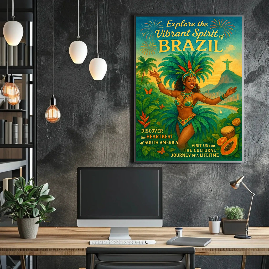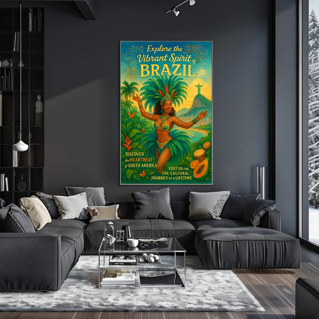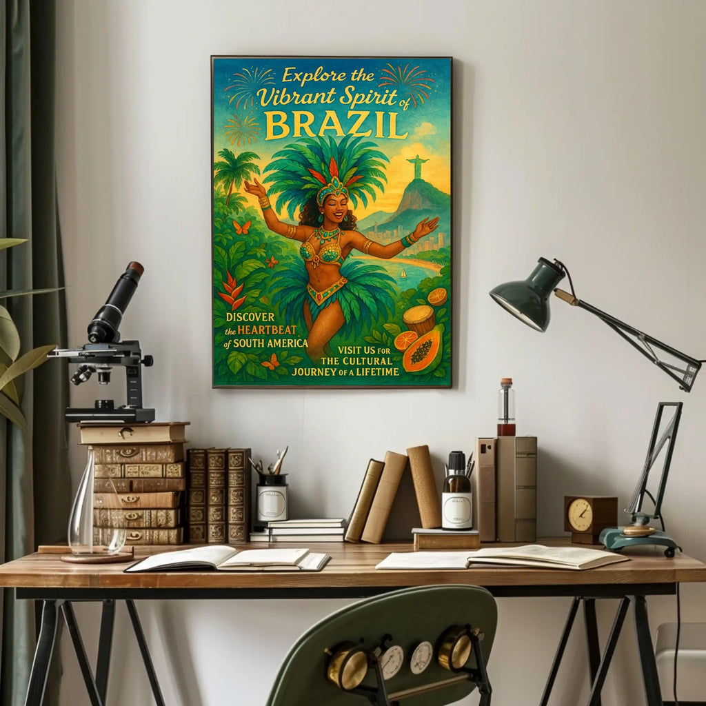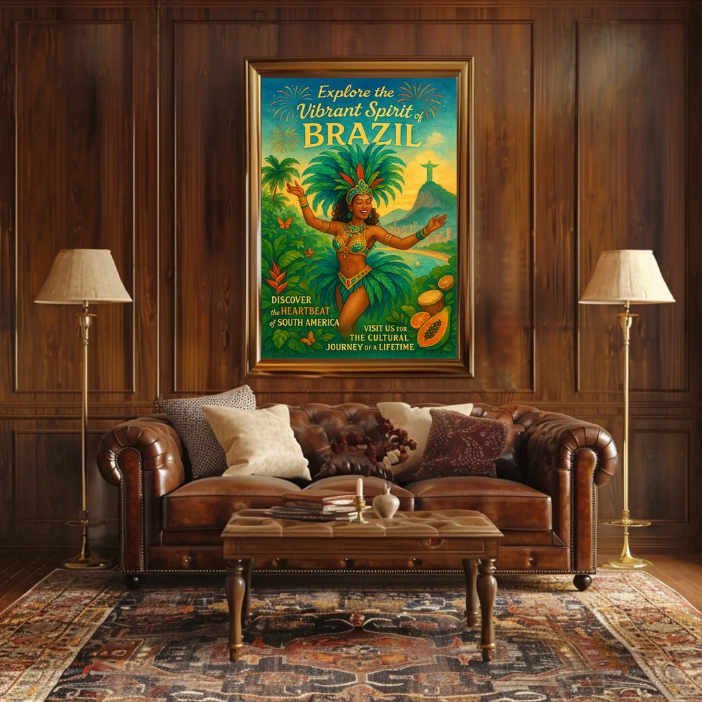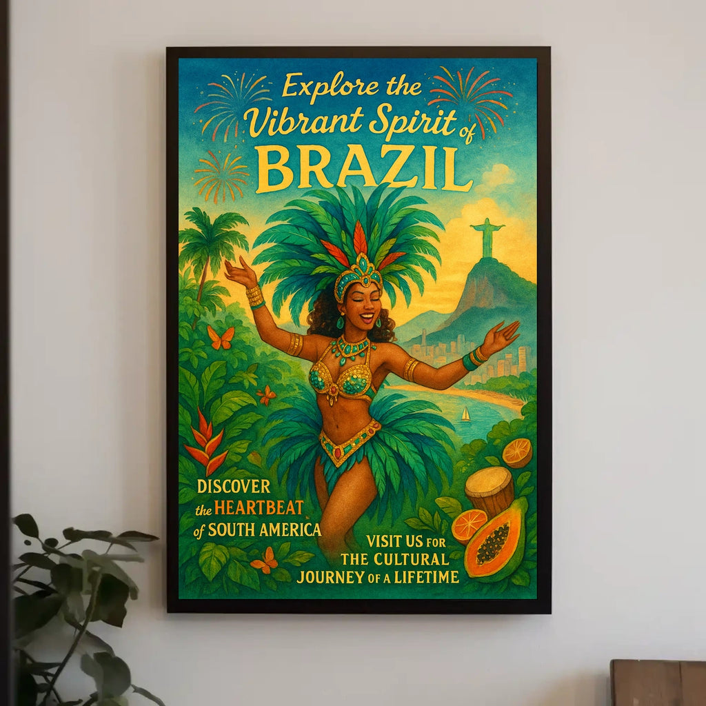 Bring home this vibrant Brazil poster today and transform any wall into a storied scene of travel and culture. Perfect for gifting or personal enjoyment — shop now and elevate your decor with a single, striking print.