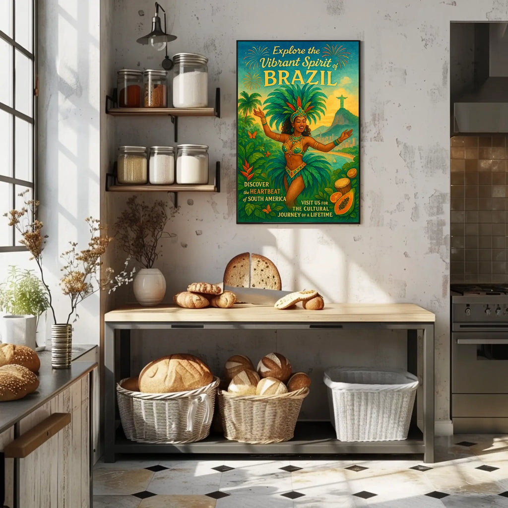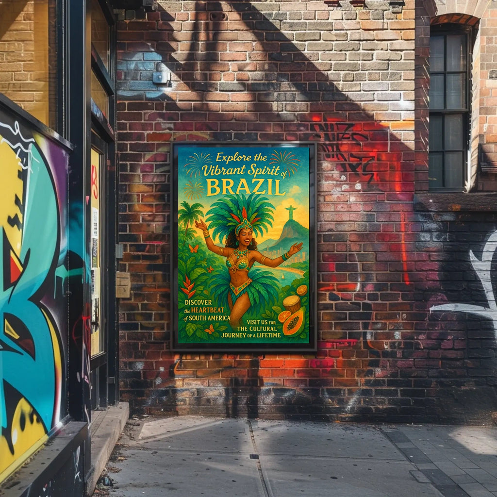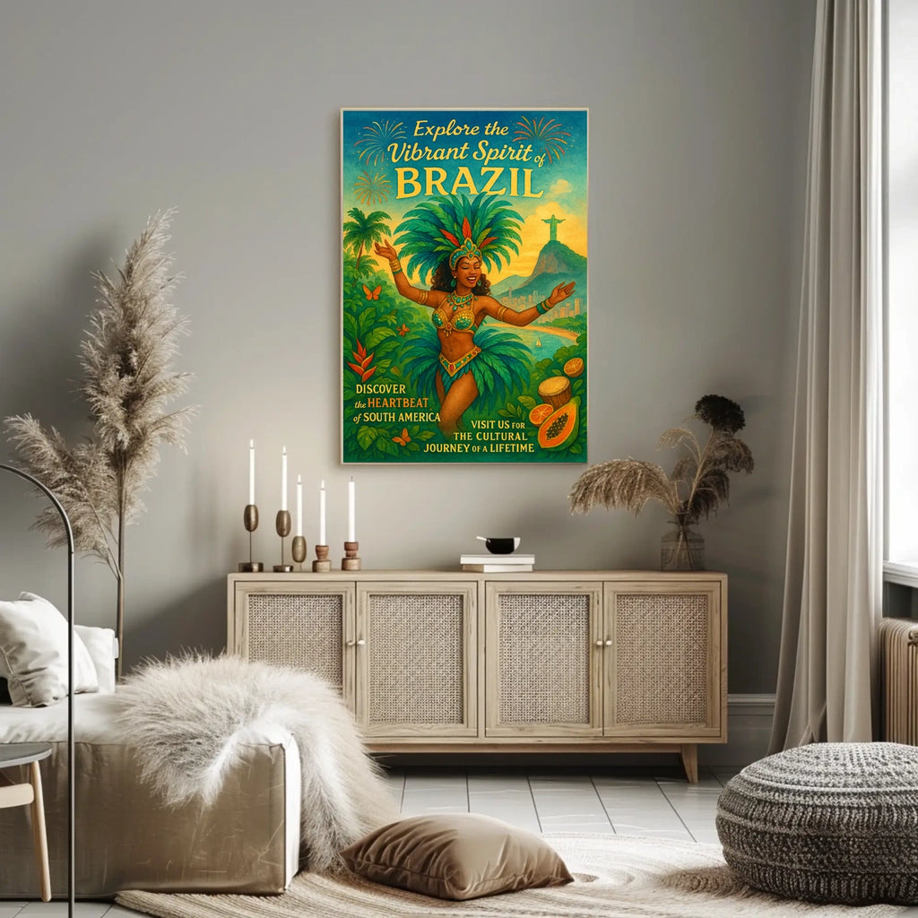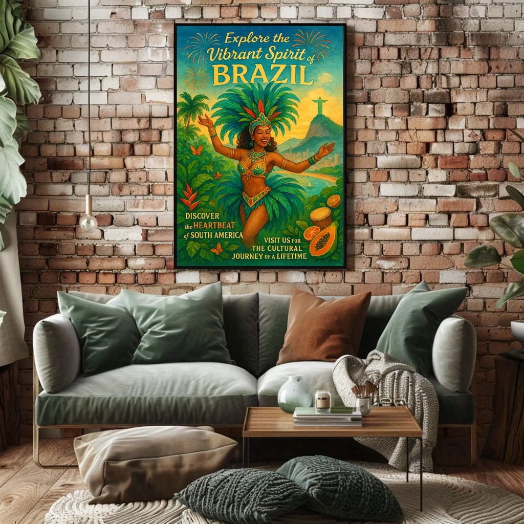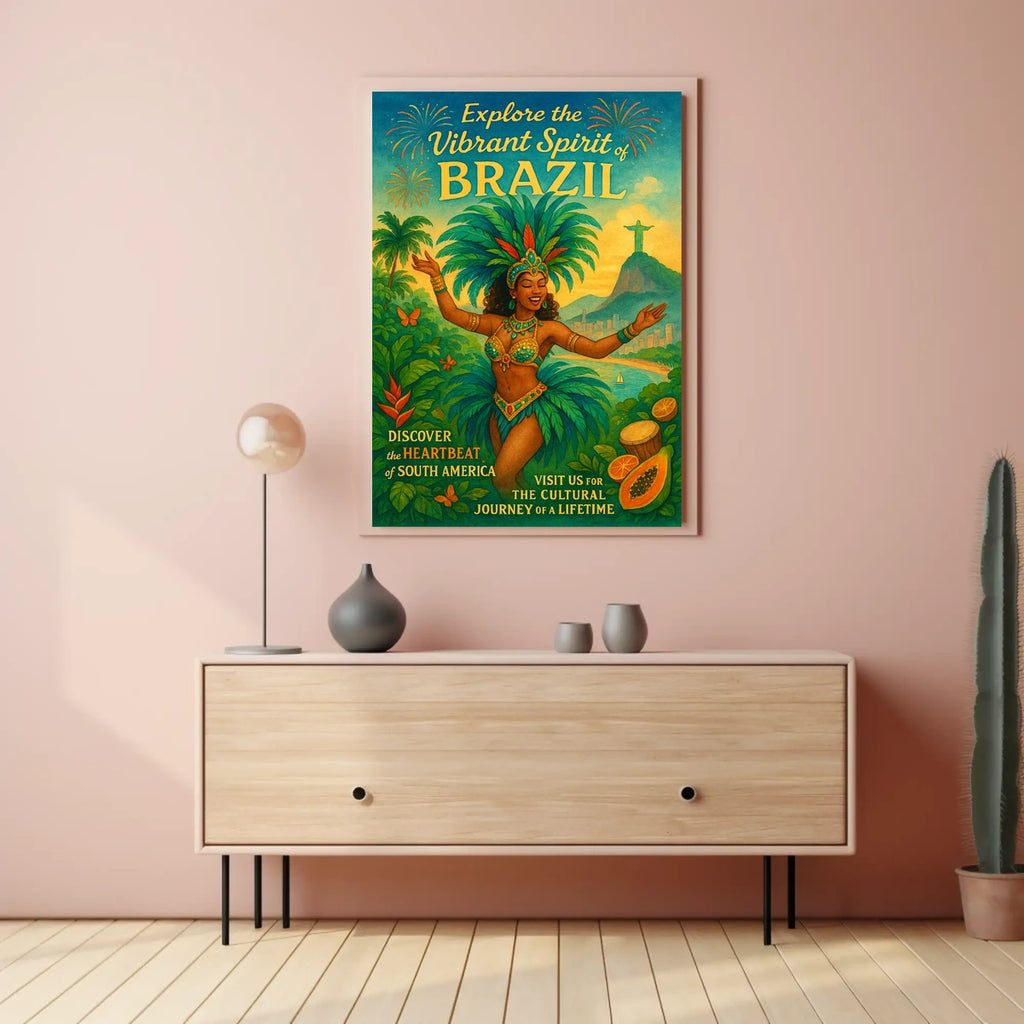 Bring home this vibrant Brazil poster today and transform any wall into a storied scene of travel and culture. Perfect for gifting or personal enjoyment — shop now and elevate your decor with a single, striking print.
