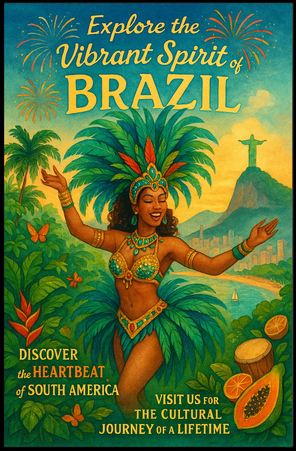 Intro: Capture the vibrant spirit of Brazil with this poster. Designed for decor lovers and wanderlust spirits, it brightens any room and sparks conversations with its color-rich, travel-inspired visuals.