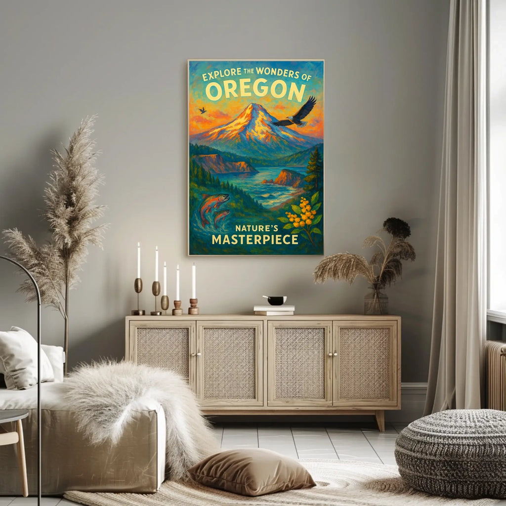 Bring the spirit of Oregon into your home with this captivating poster. A bold statement piece that enhances living spaces, inspires travel, and sparks daily inspiration. Don’t miss your chance to own this vivid celebration of the Pacific Northwest—order now and transform your space.