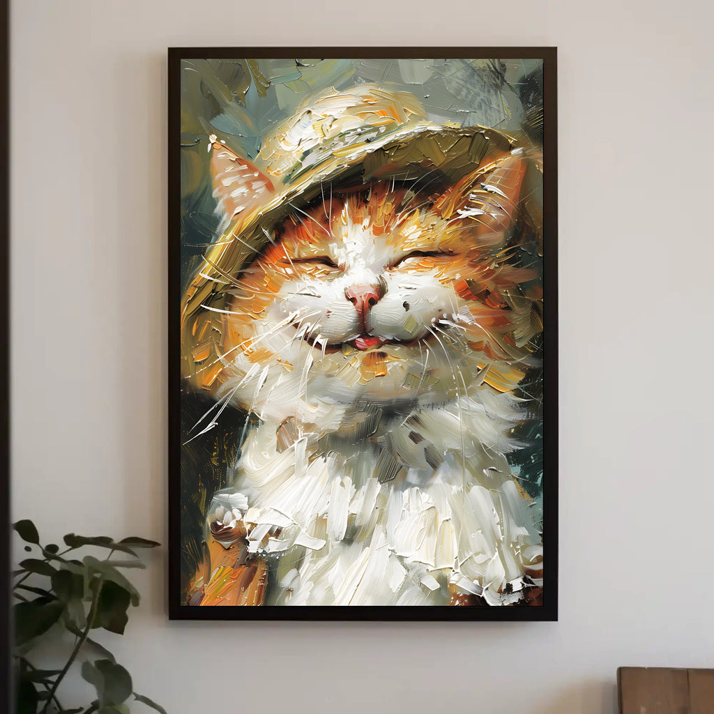 Bring a burst of joy and painterly charm to your walls with the Expressive Cat in Hat Artistic Animal Poster from PosterGoat. This impressionistic poster captures a smiling orange and white cat wearing a stylish hat—rendered in bold, textured brushstrokes that give the image depth, movement and a delightfully tactile look.