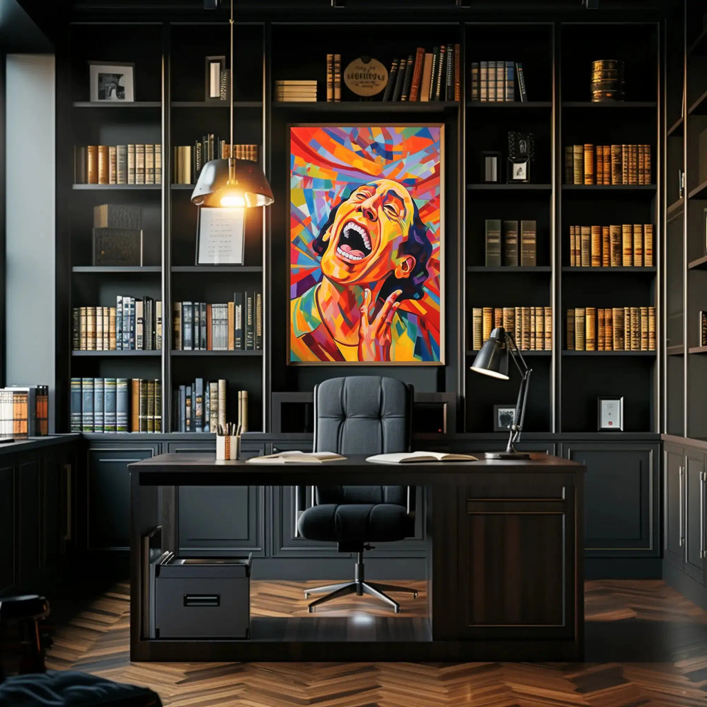Inject a rush of color and emotion into any room with the Expressive Modern Pop Art Energetic Vibes Artistic Poster from PosterGoat. This striking pop‑art print features an exuberant, wide‑mouthed portrait rendered in bold, angular color blocks and kaleidoscopic backgrounds — a true statement piece that commands attention and sparks conversation.