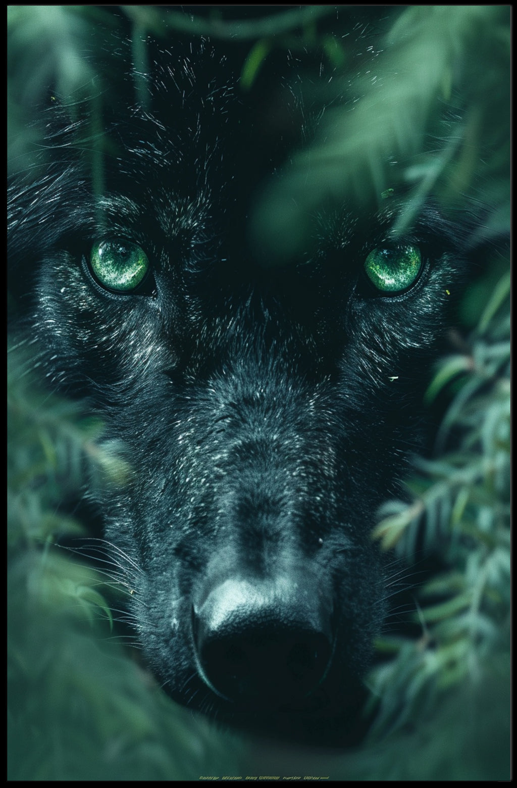Eyes of the Wild Poster from PosterGoat captures the raw intensity of the natural world in a single, unforgettable frame. A close-up portrait of a wolf peering through foliage, this premium print draws the viewer in with striking emerald eyes and hyper-detailed fur—perfect for nature lovers, wildlife art collectors, and modern home decor enthusiasts.