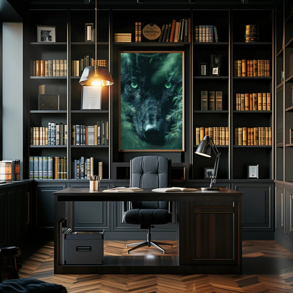 Green-accented palette: Deep forest tones and vivid green eyes add a calming yet bold aesthetic that complements minimalist and contemporary interiors.