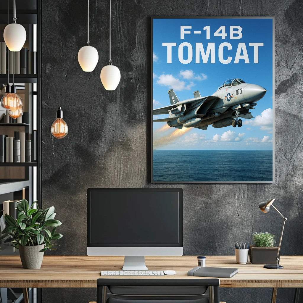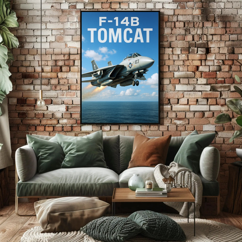 - Clean, minimalist design: Bold "F-14B TOMCAT" lettering at the top makes a strong graphic statement that complements modern interiors.