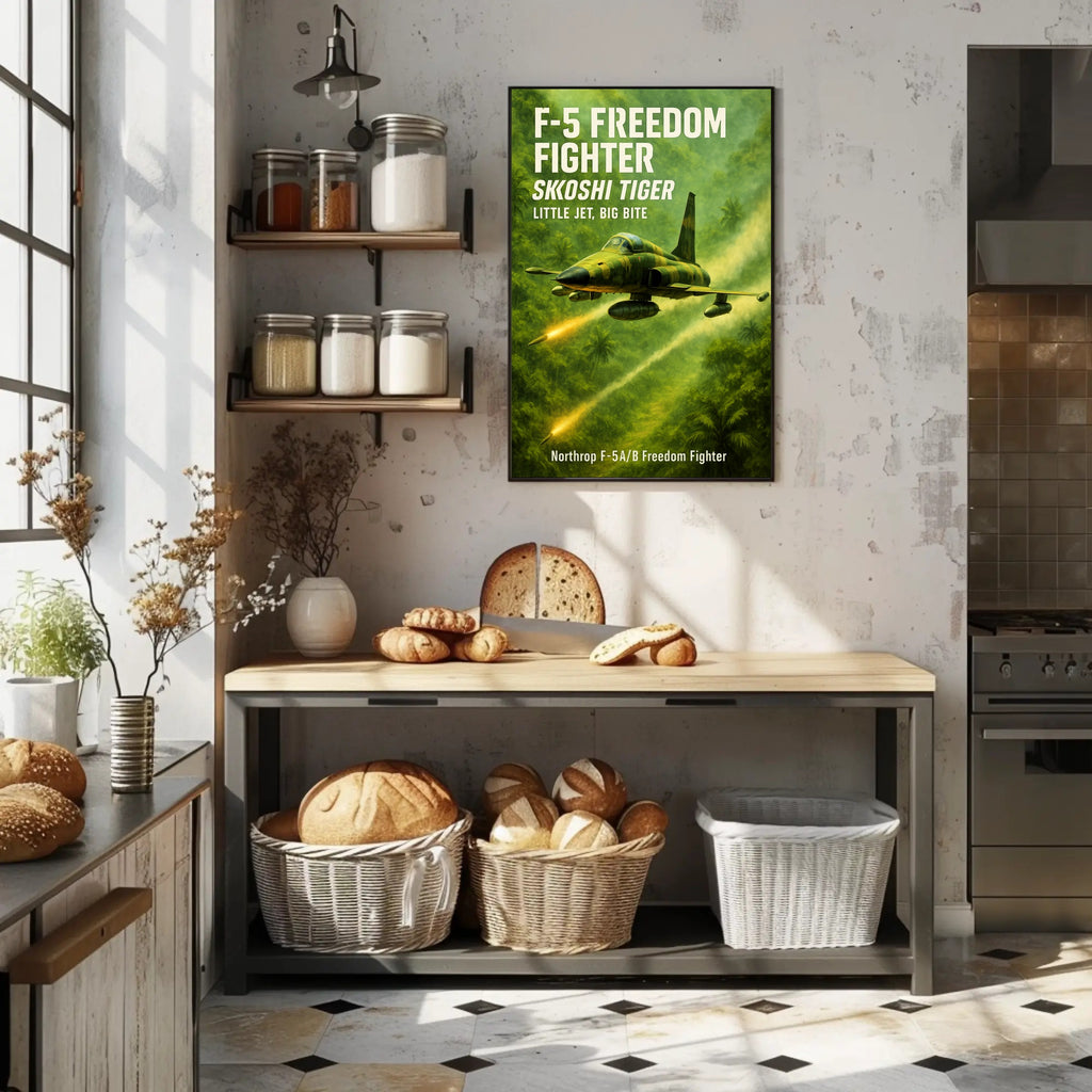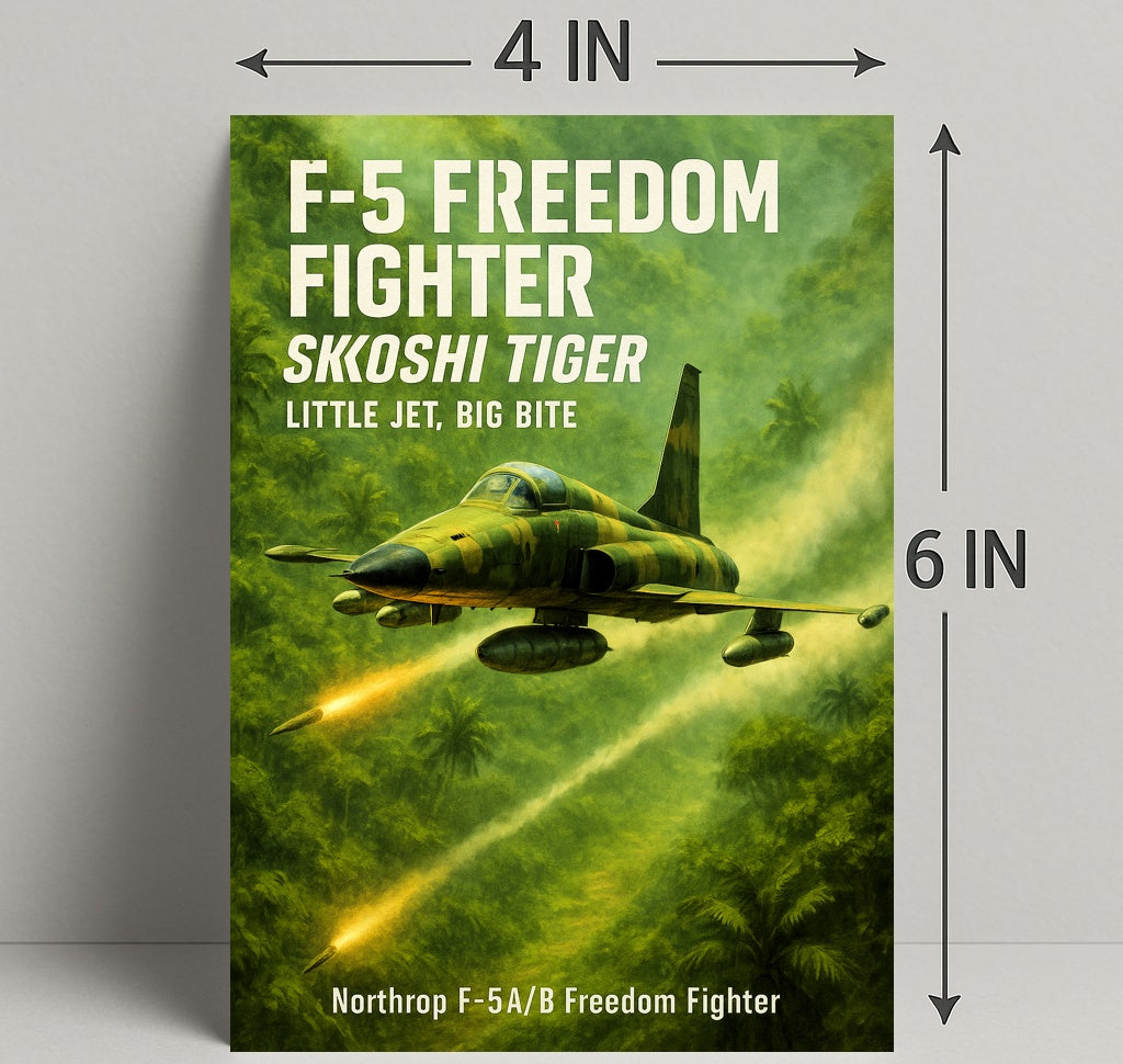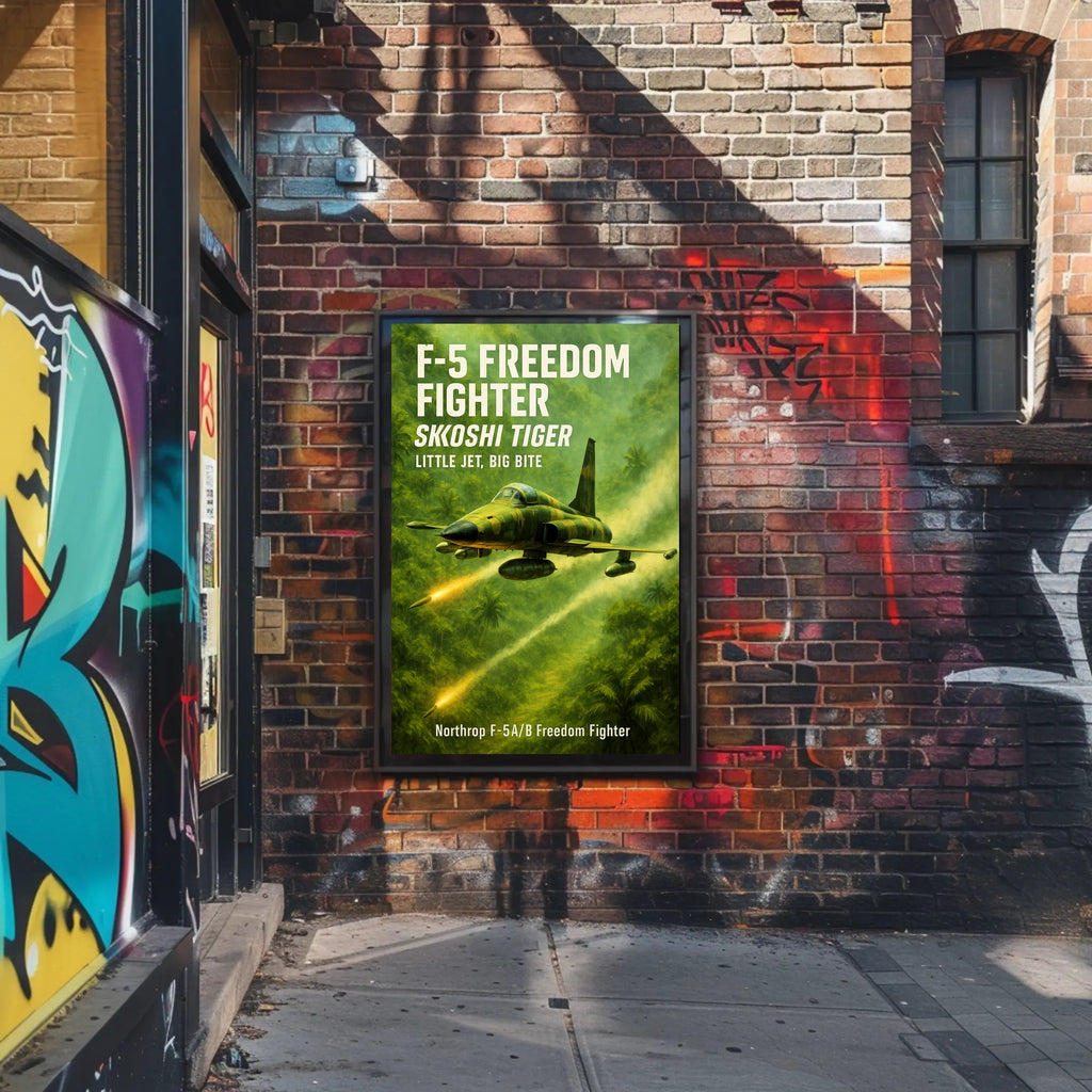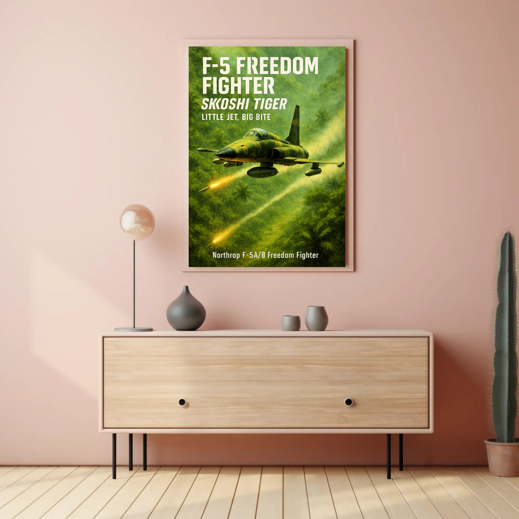 Bring the adrenaline of the Skoshi Tiger into your space — order this F-5 Freedom Fighter poster from PosterGoat today and elevate your decor with aviation history and cinematic style.