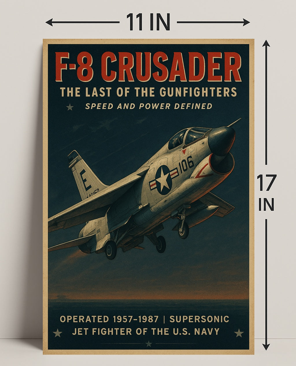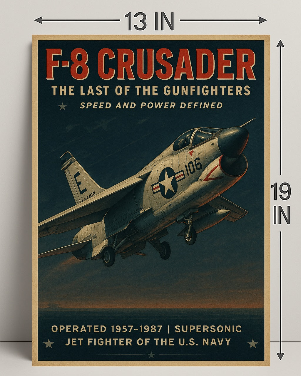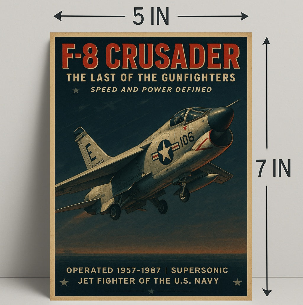 - Stunning Visuals: The poster features a meticulously detailed design showcasing the F-8 Crusader in flight, perfect for adding an eye-catching focal point in any room.