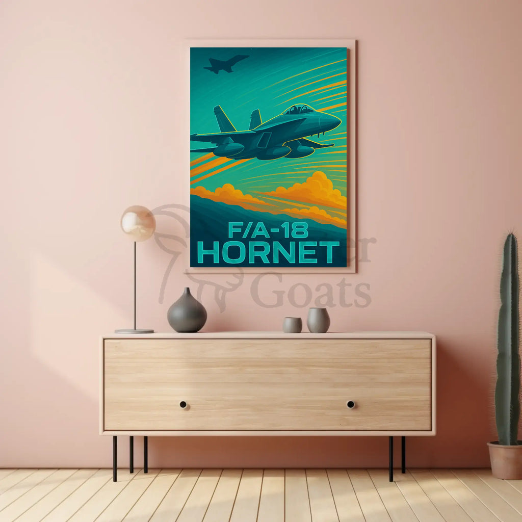 - Designed for display: Bold F/A-18 HORNET typography anchors the composition and reads beautifully from across the room.