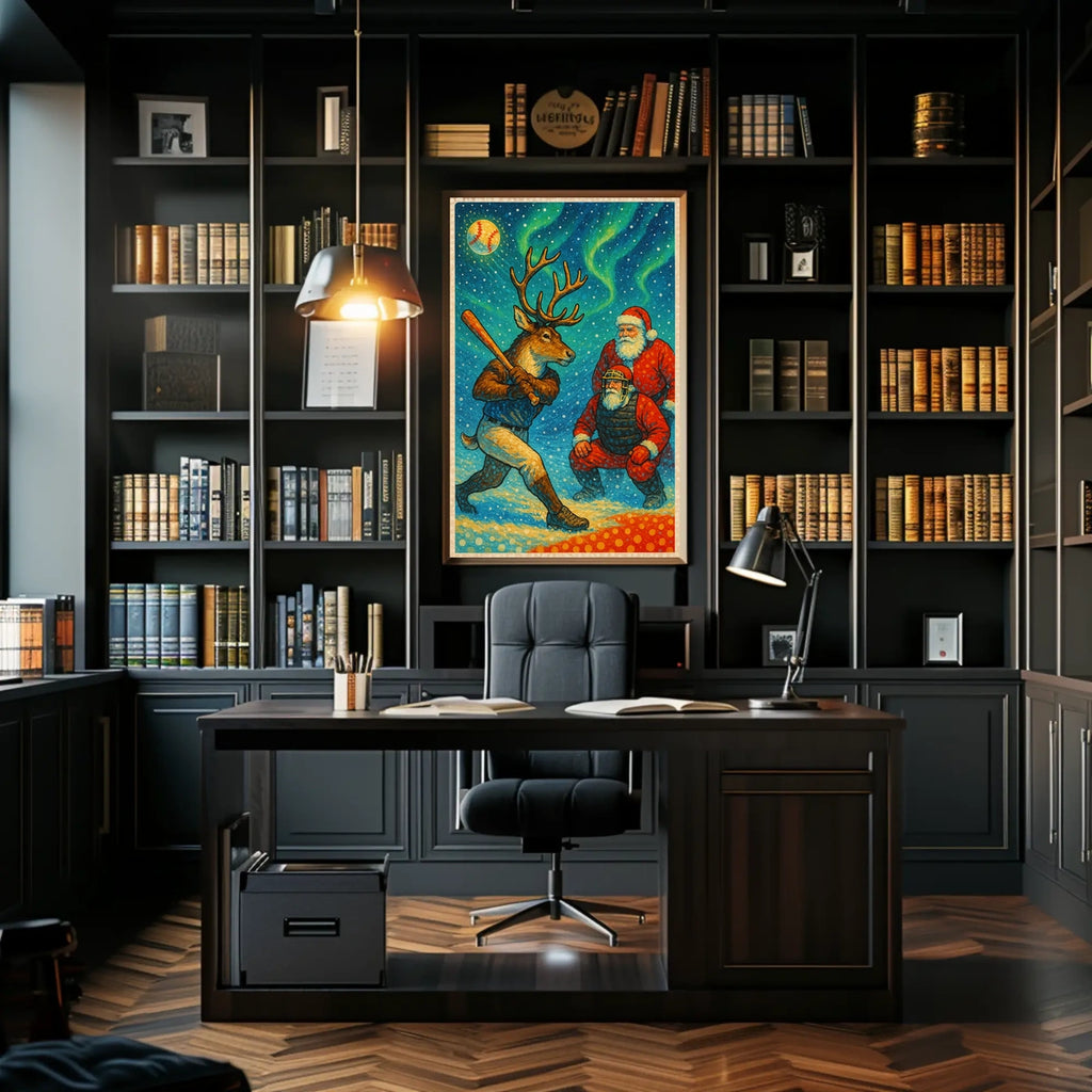 This painterly winter scene blends nostalgia with imaginative charm, making it the perfect addition to any festive or sports-themed space. Bring the Festive Baseball Christmas Reindeer Fantasy Poster into your home, classroom, or office today and let your walls tell a powerful story.
