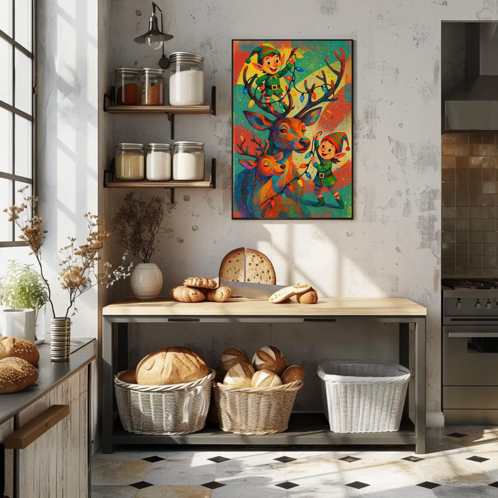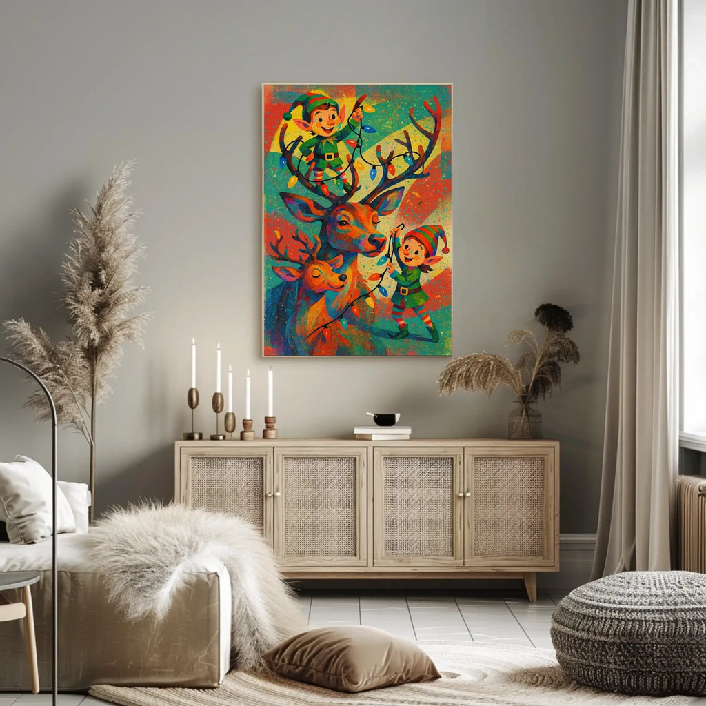 Celebrate the beauty of Festive Elves and Reindeer with this timeless wall art. Inspired by real-world scenery, this poster captures the essence of festive charm. Designed for decor lovers and wanderlust spirits, this art print adds warmth and whimsy to any room.