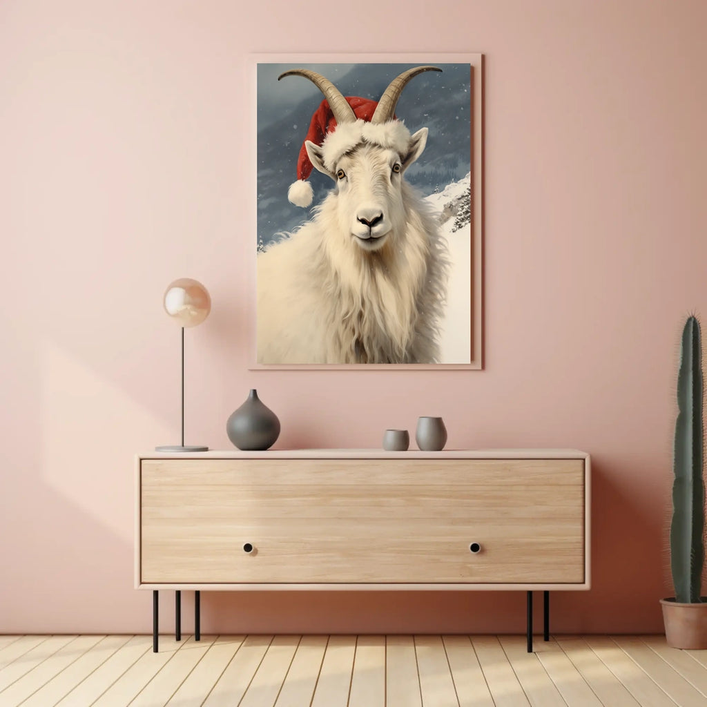 Whether you’re decorating a living room, study, or workspace, this poster adds charm and wanderlust to any space. It blends art, festive spirit, and scenic mountain imagery to create a focal point that goat lovers and mountain admirers alike will appreciate.