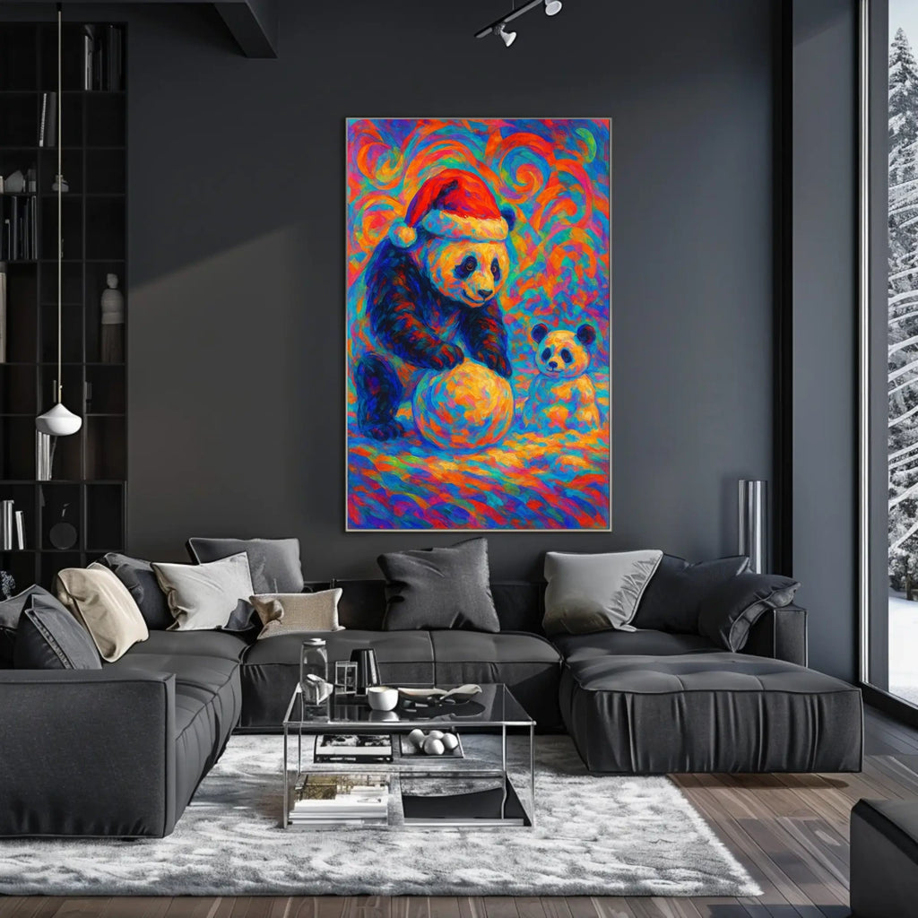 - Detailed design capturing festive pandas in a whimsical wonderland