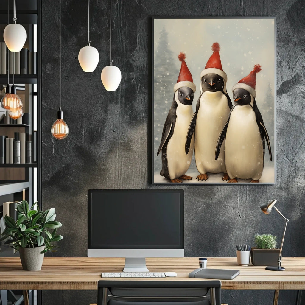 - Printed with precision and made to inspire, this artwork is more than decoration—it's a conversation piece that connects whimsy, nature, and style. Bring Festive Penguins Trio Poster into your home, classroom, or office today and let your walls tell a powerful story.