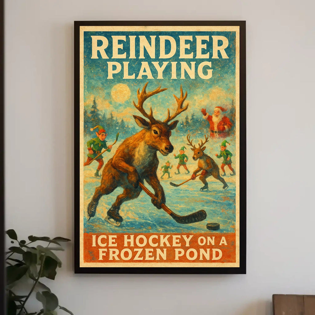 Printed with precision and made to inspire, this artwork is more than decoration—it’s a conversation piece that connects Christmas nostalgia, folklore, and holiday whimsy. Bring Festive Reindeer Ice Hockey Vintage Fantasy or Mythology Poster into your home, classroom, or office today and let your walls tell a joyful story.