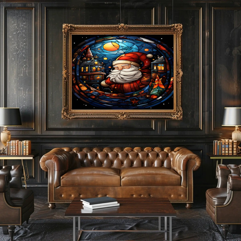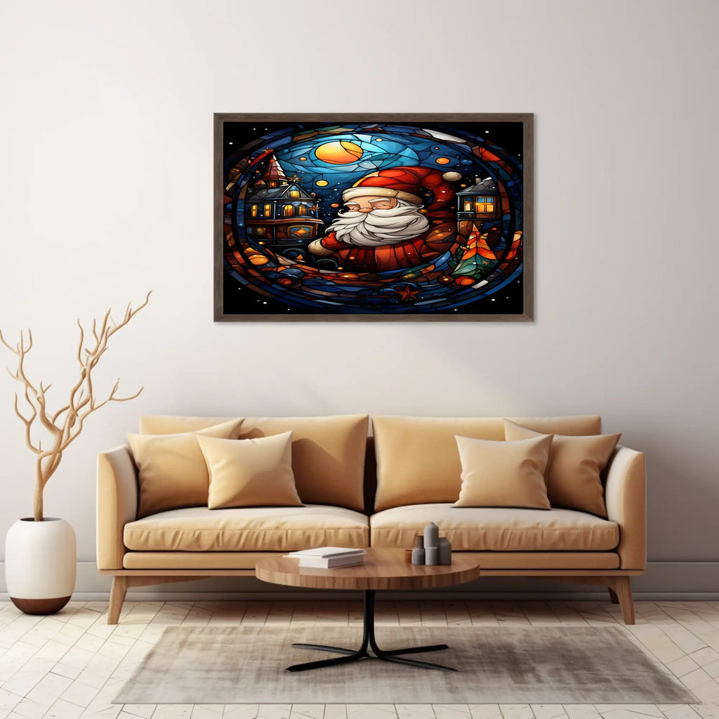 Celebrate the beauty of Festive Stained Glass Santa Poster with this timeless wall art. Designed for decor lovers and wanderlust spirits, this art print adds charm to any room with visuals inspired by real-world scenery.