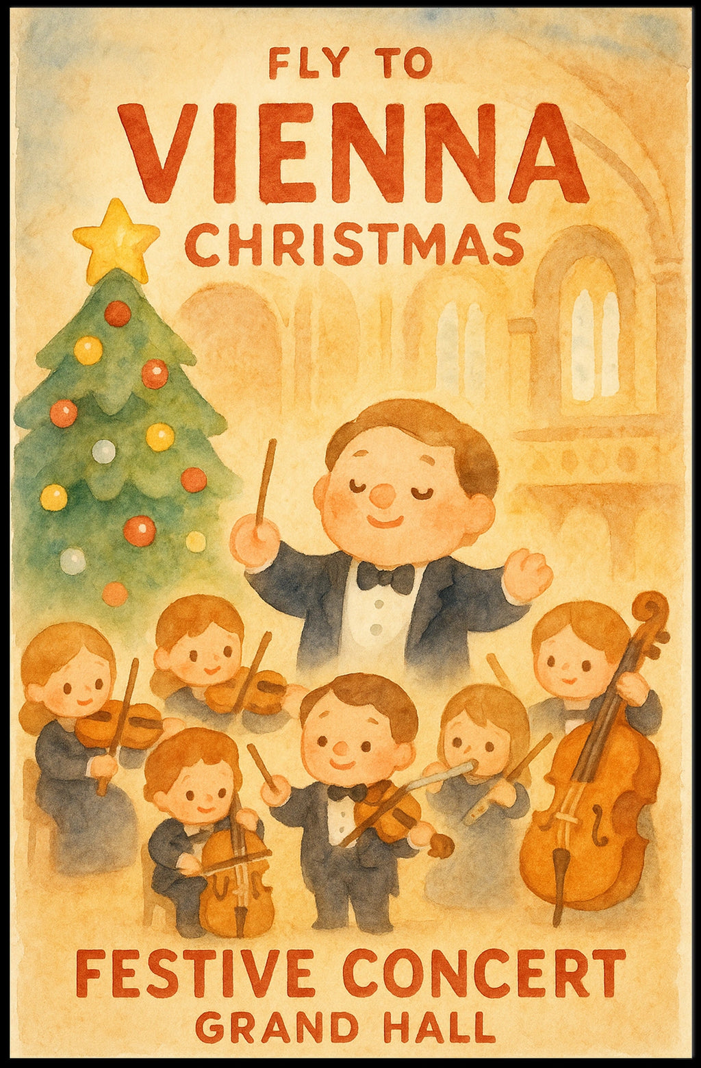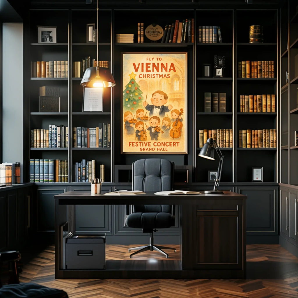 Designed to be a centerpiece in festive decor, this vienna concert poster blends a warm color palette with a cozy atmosphere, making it a perfect Christmas decoration for homes, classrooms, and offices.