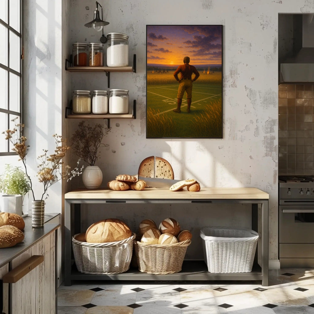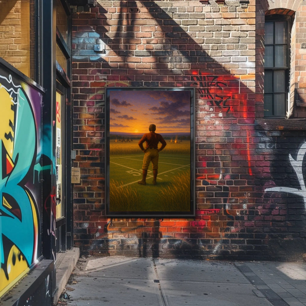 Capture ambition and heritage with the Field of Dreams Jim Thorpe Poster. This piece places a solitary football player against a stunning sunset, blending sports energy with cultural history. Perfect for game rooms, living spaces, and study areas, it sparks reflection while celebrating perseverance.
