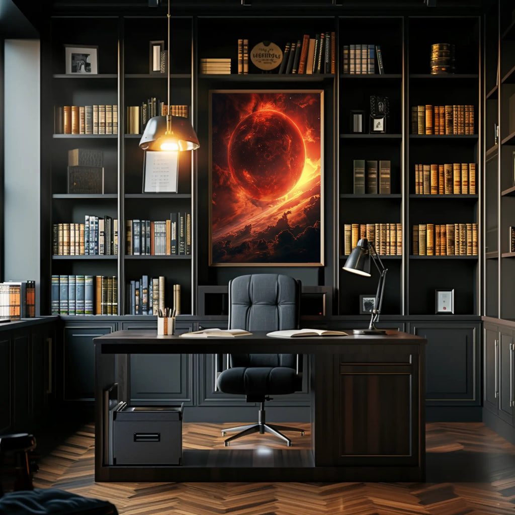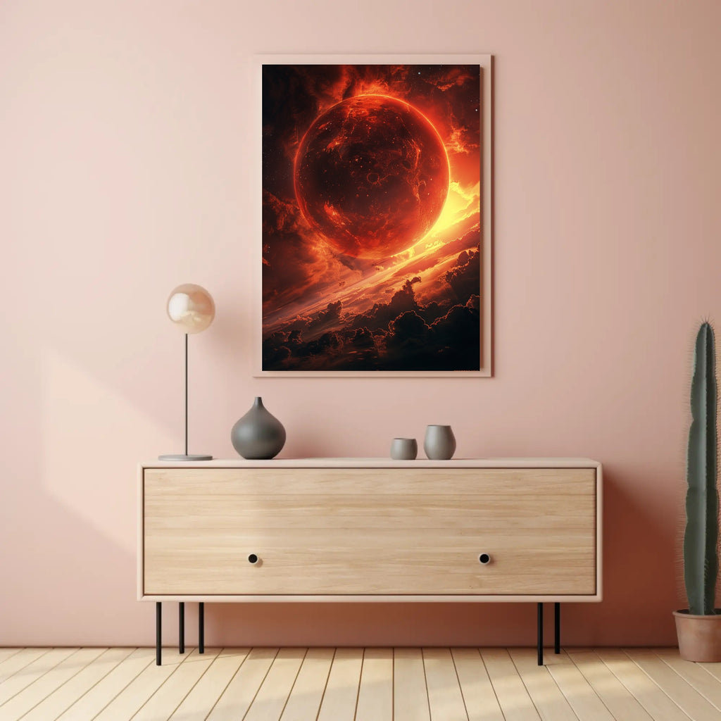 Why collectors choose this poster: The Fiery Cosmic Planet poster balances bold, vibrant color with refined composition, making it an instant focal point that elevates modern sci‑fi interiors and space exploration collections. Whether you’re curating a gallery wall or adding a single statement piece, its dramatic backdrop and photorealistic style bring cinematic energy to any space.