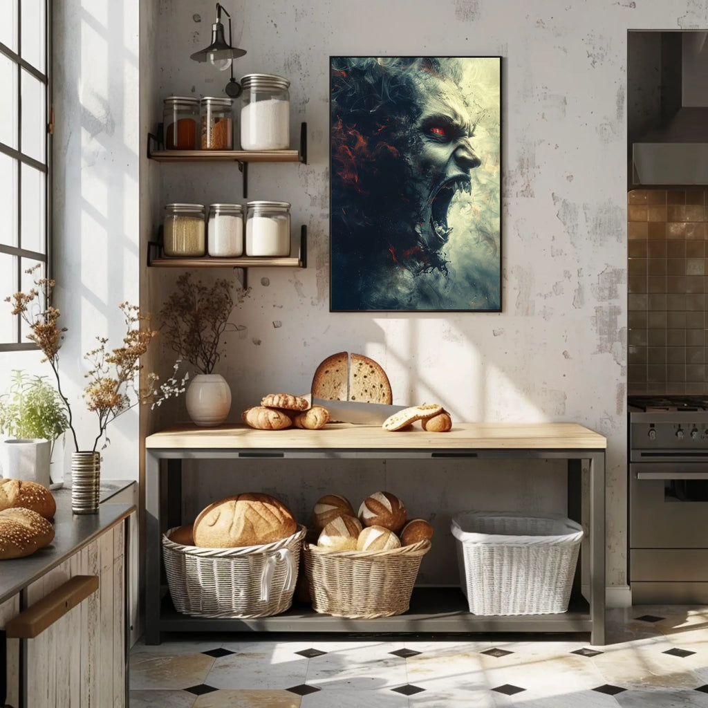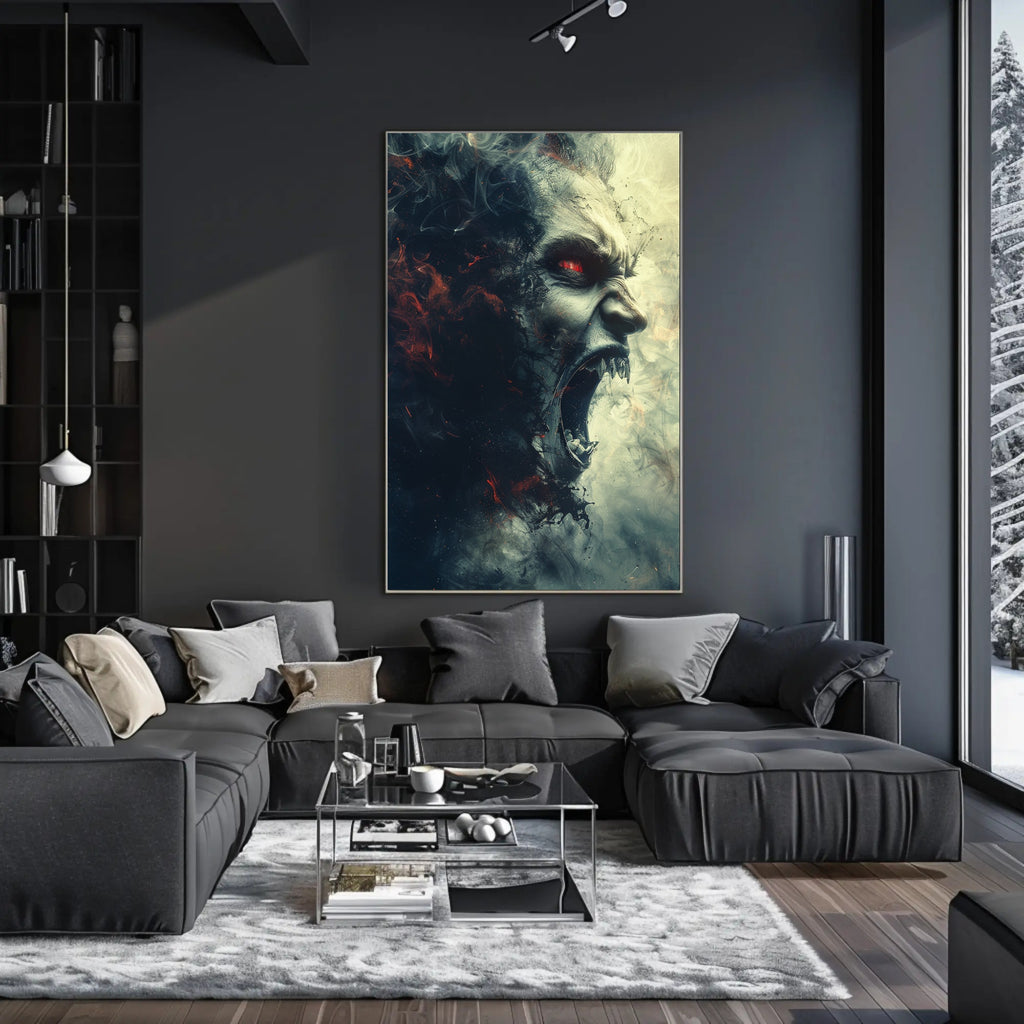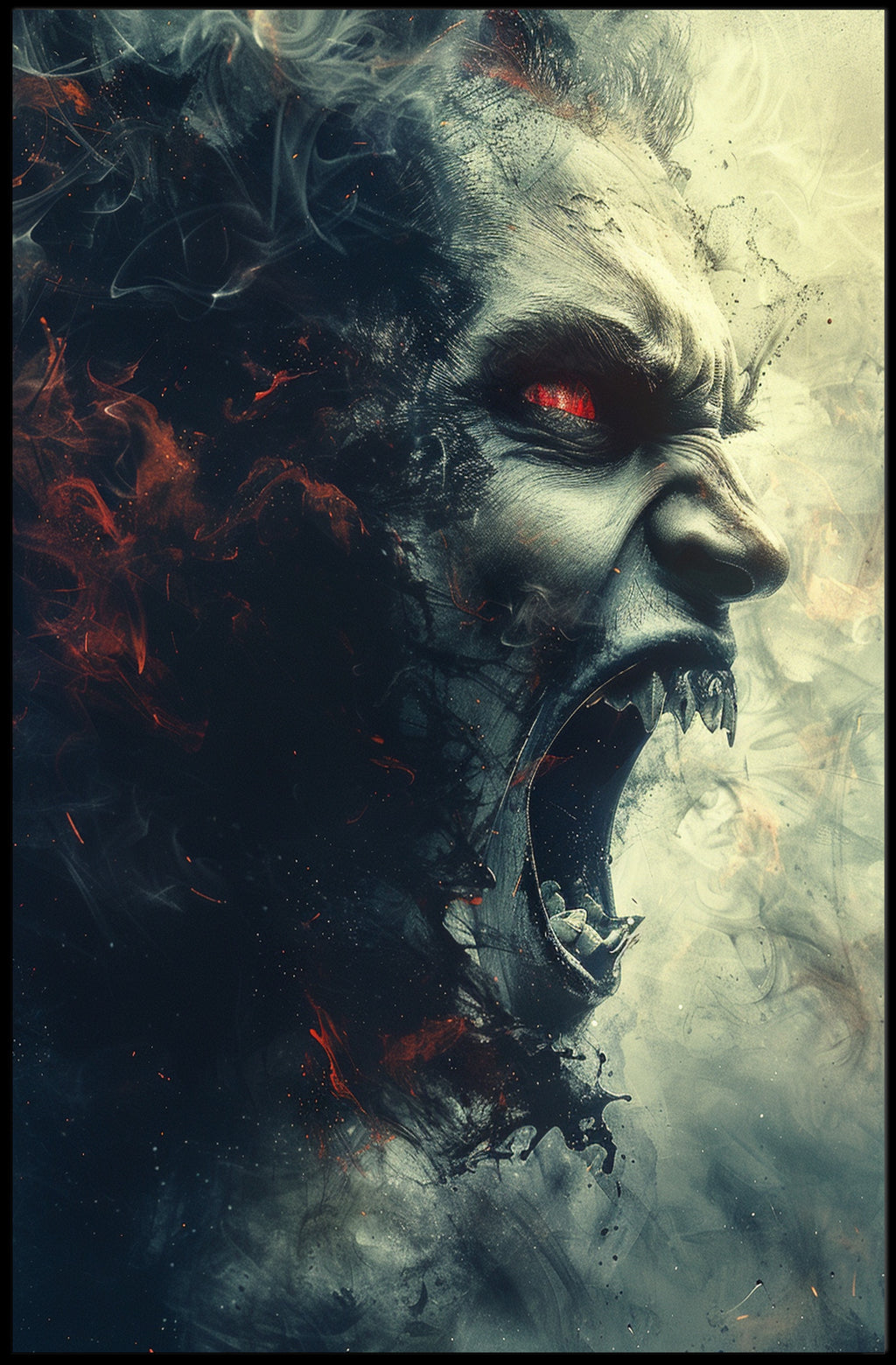 Ignite your walls with the Fiery Fury Poster from PosterGoat — a striking Pop Art print that fuses dramatic contrast, molten-red accents and stormy textures into a single, unforgettable image. This intense composition captures a roaring, smoke-wreathed visage with glowing red eyes and splintered teeth — a powerful focal piece for any room that seeks bold, passionate imagery.
