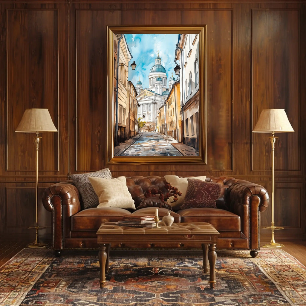 Finland Helsinki Cathedral Street View Poster from PosterGoat instantly brings Helsinki's architectural grandeur to your space, turning a blank wall into a story of travel and culture.