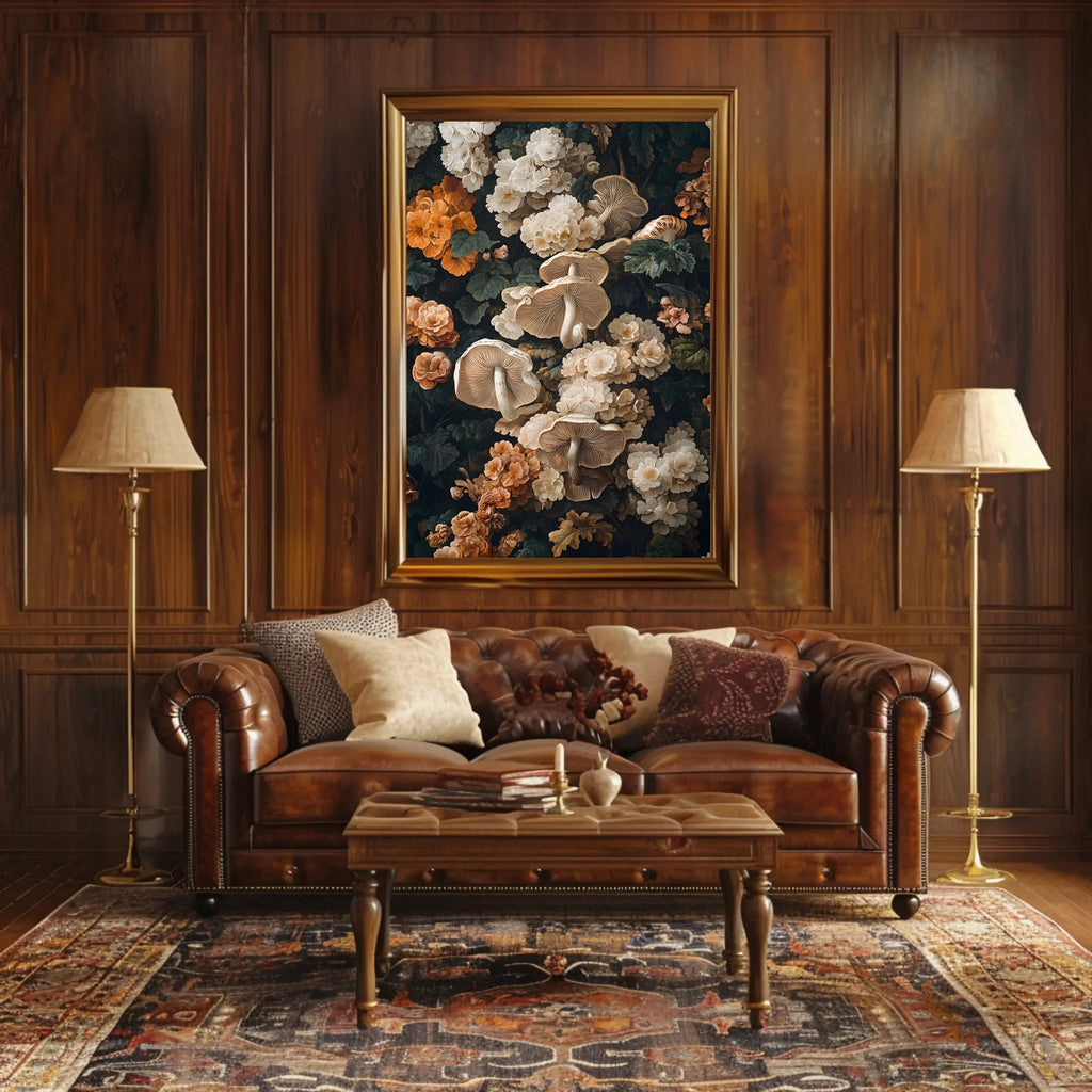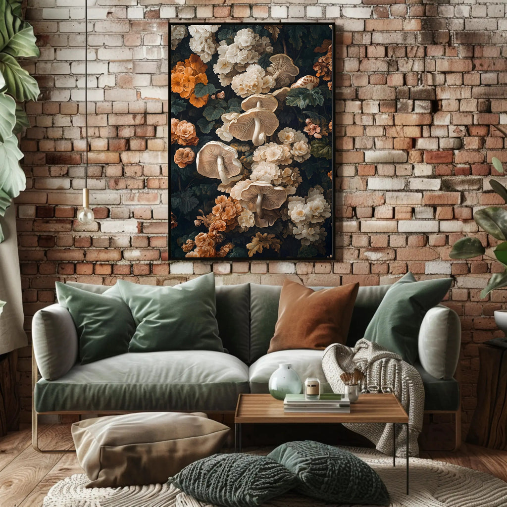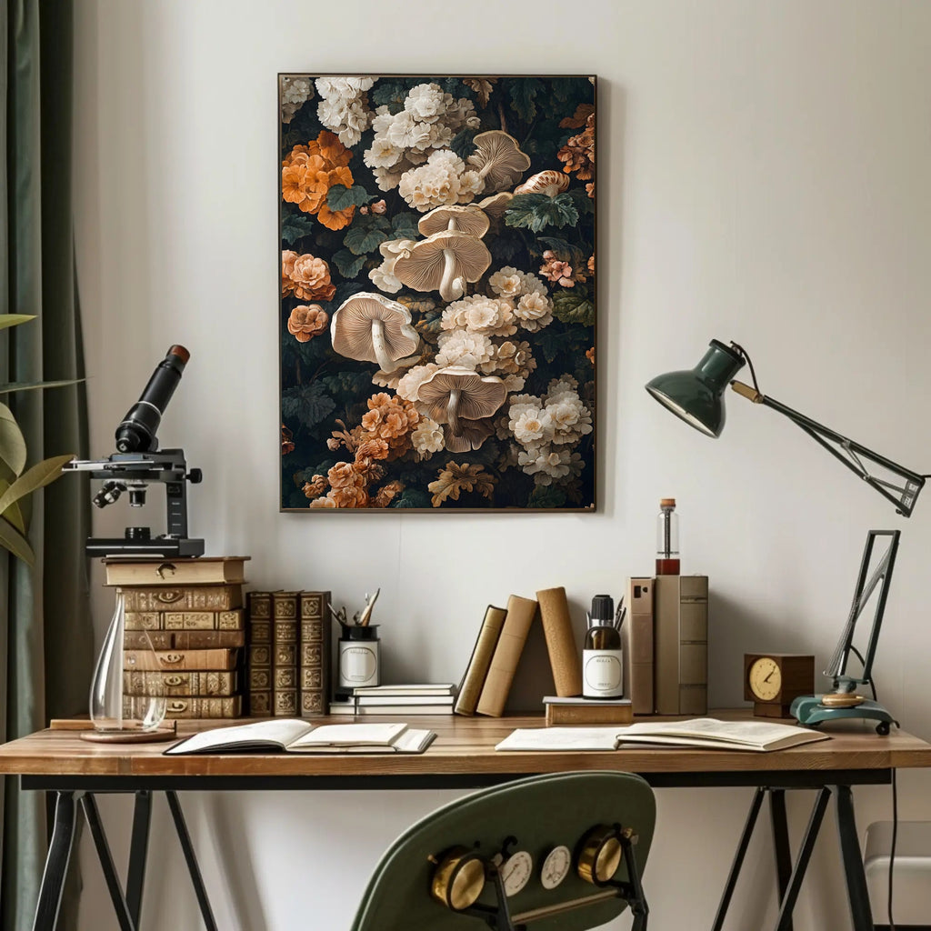 Elevate your decor with the Floral and Fungal Harmony poster and embrace the beauty of nature in your surroundings. Don't miss out on this exquisite art piece; order yours today!