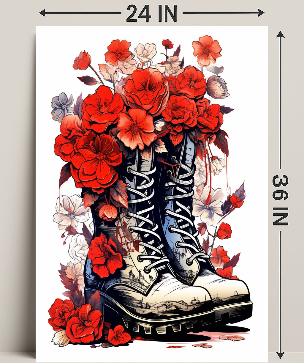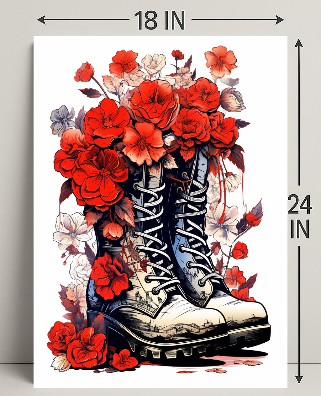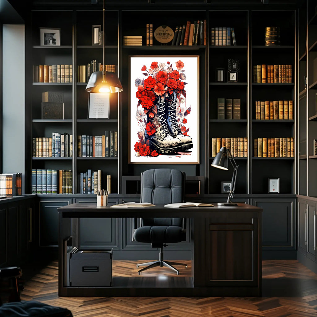 Transform your space today with this exquisite art print. Experience the fusion of fashion and nature that the Floral Boots poster brings to your home. Order now and let your walls tell a story!