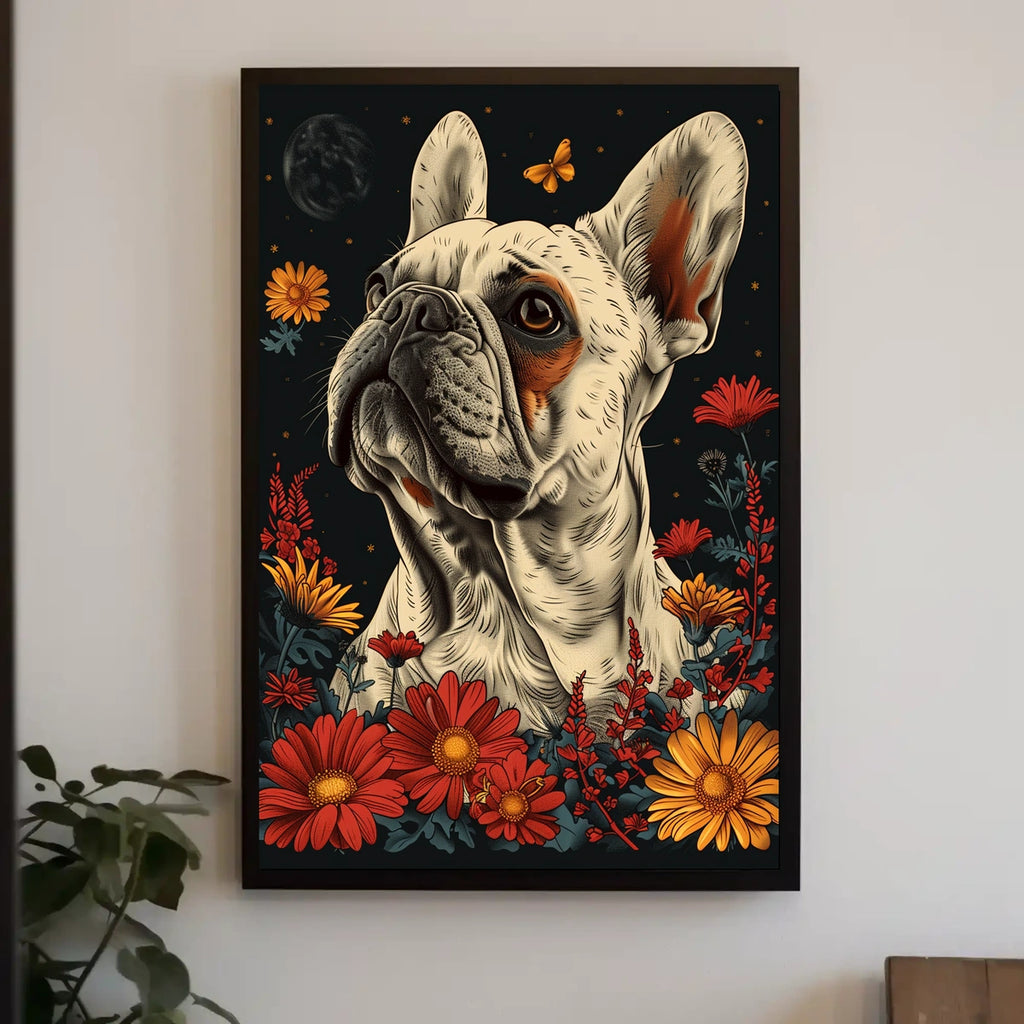 - Printed with precision and made to inspire, this artwork is more than decoration—it’s a conversation piece that connects art, nature, and whimsy. Bring Floral Bulldog Fantasy into your home, classroom, or office today and let your walls tell a powerful story.