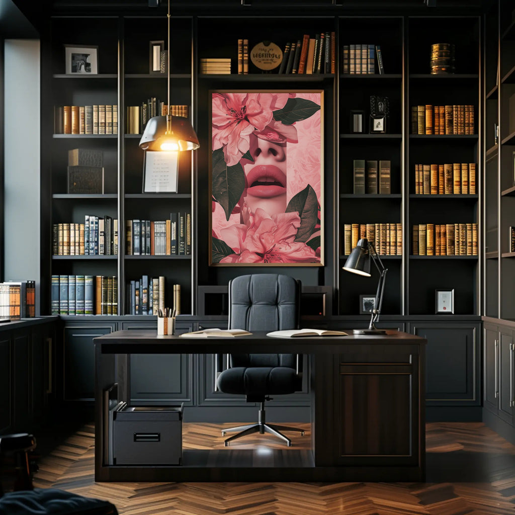 Why it works: The close-cropped composition and high-contrast color palette make this piece a focal anchor that complements minimalist, modern, and eclectic interiors alike. Its floral-surreal narrative invites interpretation while elevating everyday spaces with elegant design.