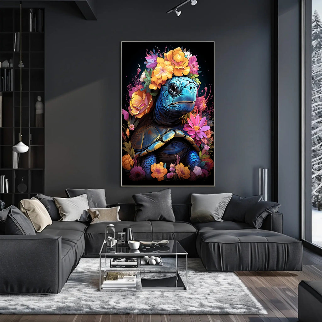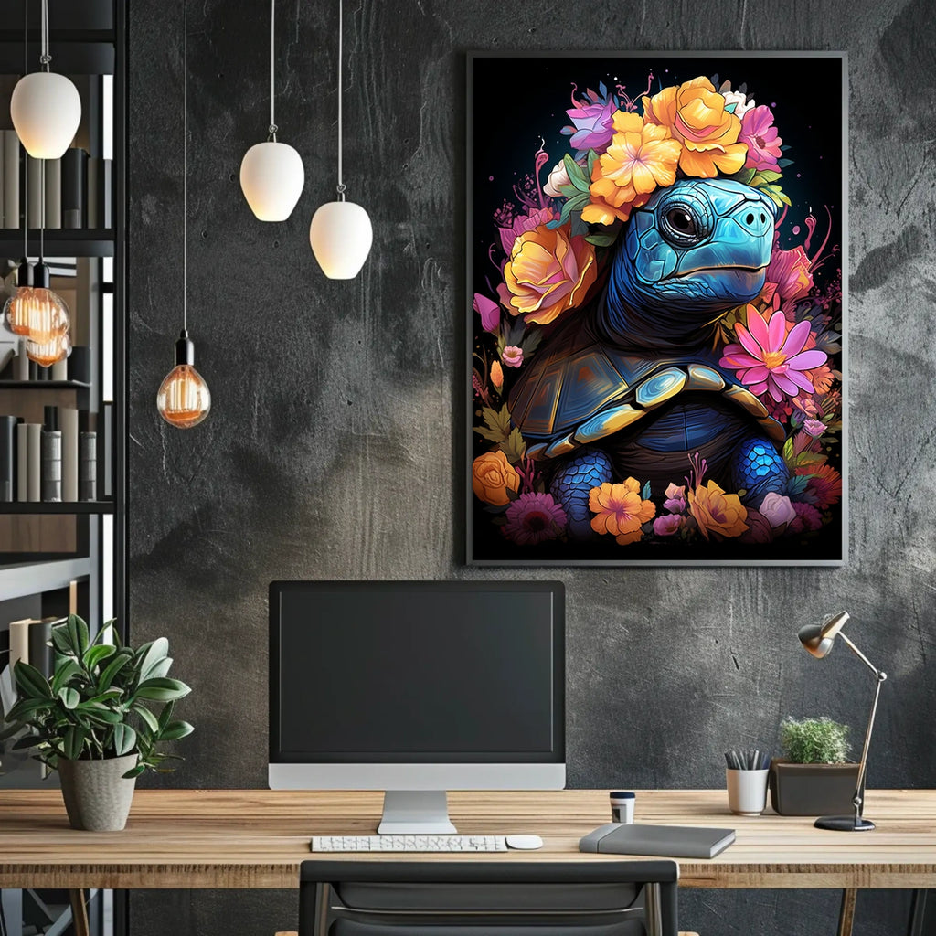 Immerse your space in the enchanting world of Floral Majesty The Turtles Crown, a vibrant poster that blends nature and art. This playful yet elegant design features a majestic turtle crowned with colorful blossoms, inviting curiosity and delight for art lovers and wildlife enthusiasts alike.
