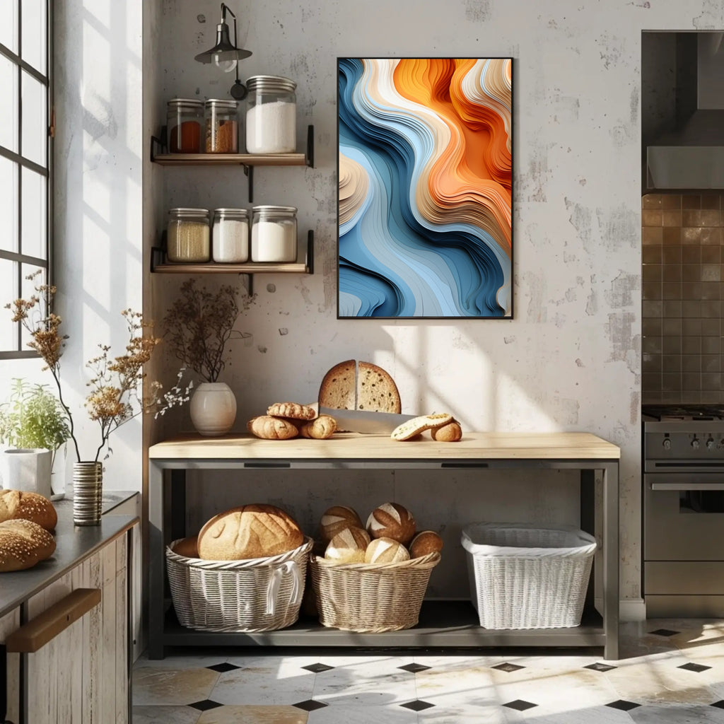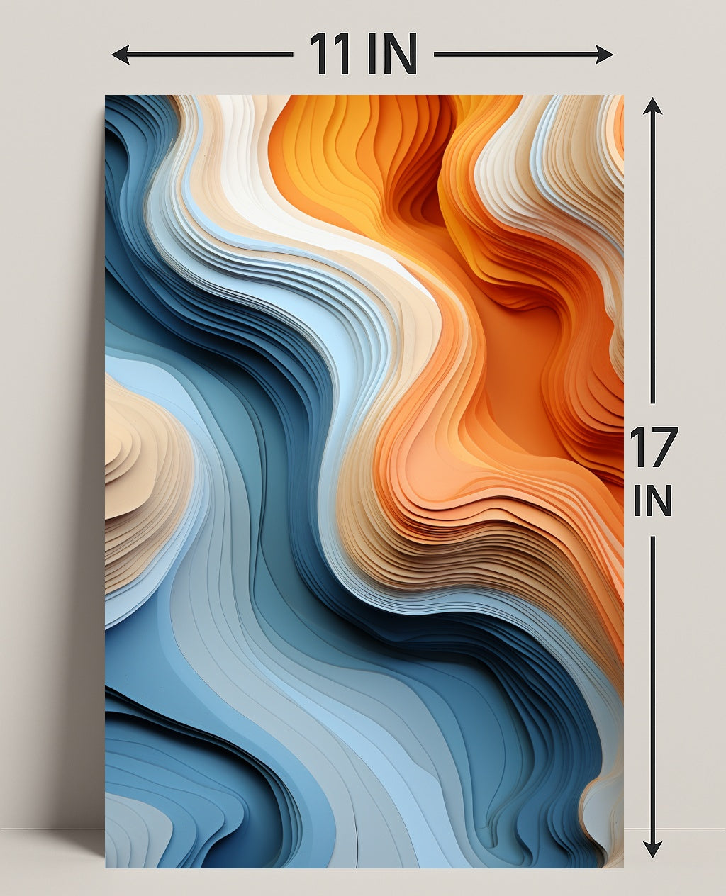 Elevate your walls with the Flowing Colors Poster from PosterGoat — a striking, minimalist artwork that blends sculptural depth with serene color harmonies. This poster features layered, paper-like waves in rich blues, warm oranges and soft creams, creating an organic, flowing composition that draws the eye and calms the room. Perfect for modern living rooms, offices, or as a thoughtful gift, this piece transforms ordinary walls into gallery-style focal points.