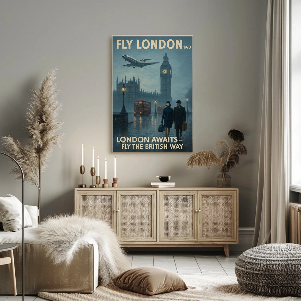 Capture London's 1970s spirit with this poster-style art print. Designed for decor lovers and wanderers, it channels real-world scenery into a bold, nostalgic piece that brings charm to any room and invites conversation about travel, art, and vintage design.