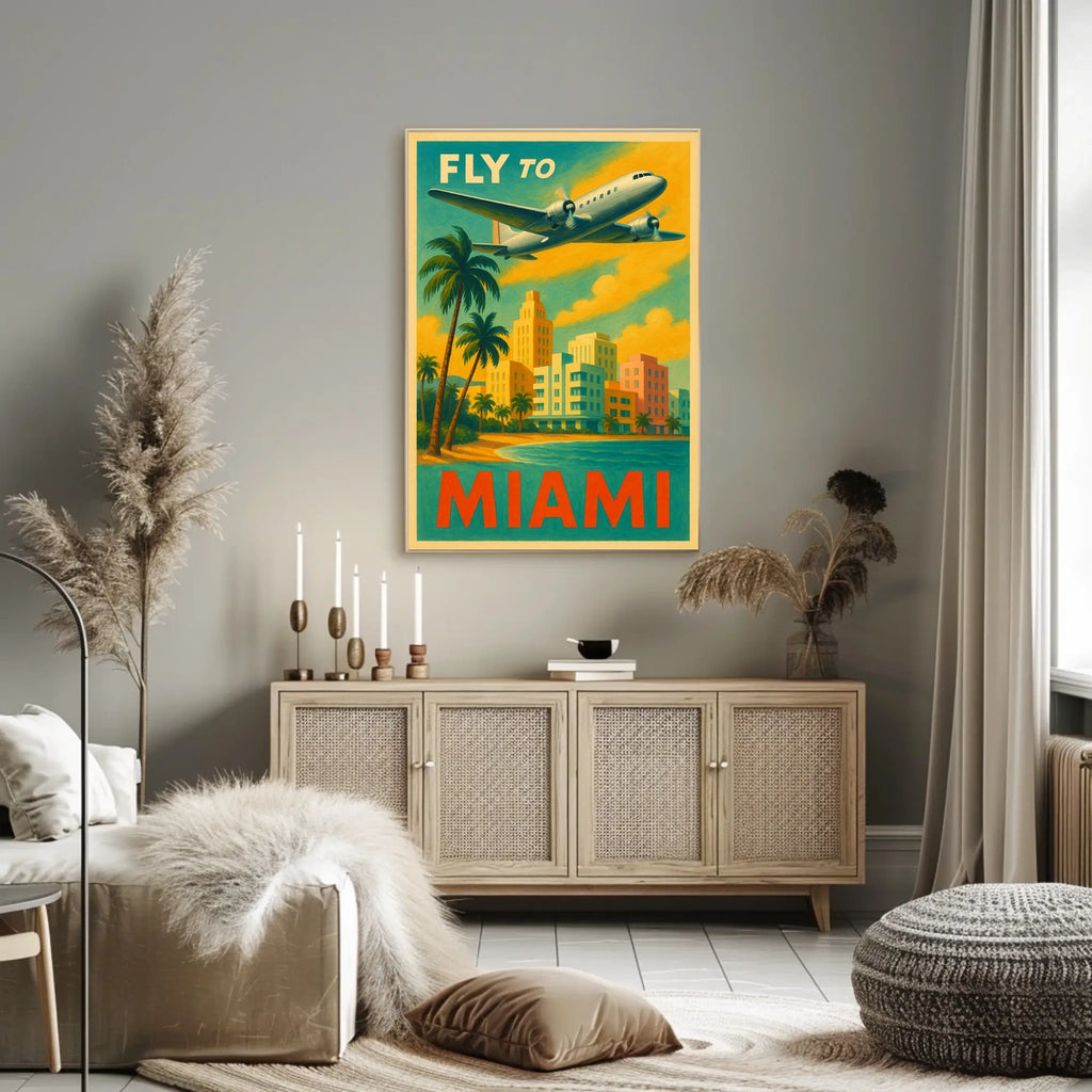 Capture the sunny allure of travel with the Fly to Miami Poster. This decor print blends real-world scenery with contemporary flair, turning any wall into a lively escape and wall art for dreamers and design lovers alike. Perfect for living rooms, bedrooms, or creative spaces, it adds color, optimism, and a touch of coastal charm.