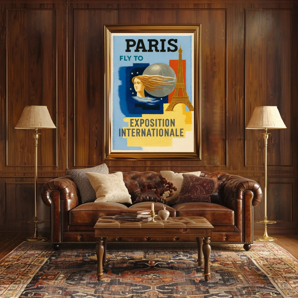 Detailed design highlighting the Paris Exposition Internationale theme and classic travel-poster aesthetics