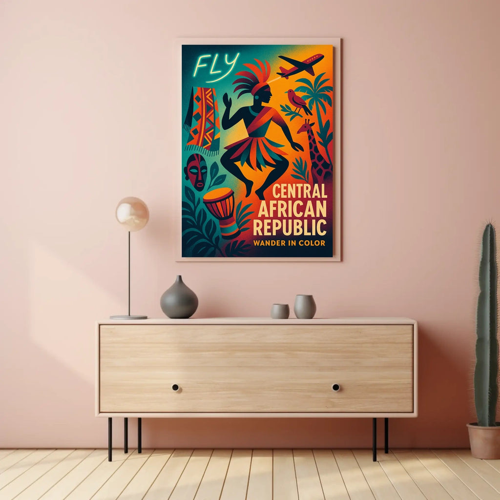 Capture the spirit of travel with this Fly to the Central African Republic poster. Designed for decor lovers and wanderlust spirits, this art print adds charm to any room with visuals inspired by real-world scenery. Its understated elegance complements modern and eclectic interiors, turning blank walls into a conversation starter and a daily reminder of distant horizons.
