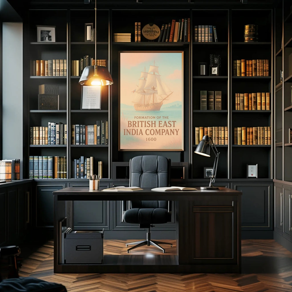 - Printed with precision and made to inspire, this artwork is more than decoration—it’s a conversation piece that connects history, culture, and style. Bring the Formation of the British East India Company into your home, classroom, or office today and let your walls tell a powerful story.