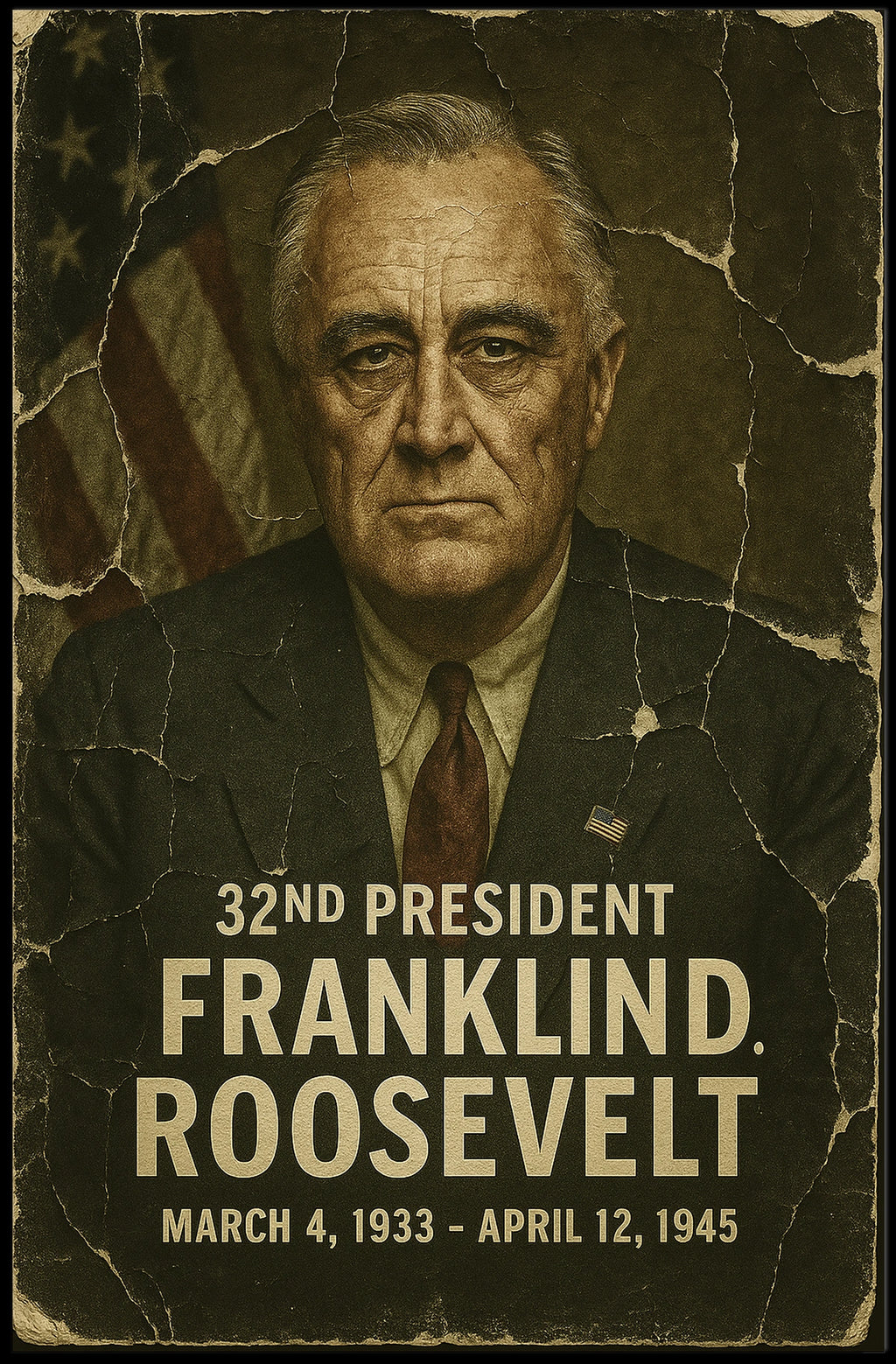 Celebrate the legacy of Franklin D. Roosevelt, the 32nd President of the United States, with this damaged photograph poster. Designed to capture its unique appeal, this piece is perfect for collectors, enthusiasts, or anyone who wants to bring meaning and inspiration into their space.